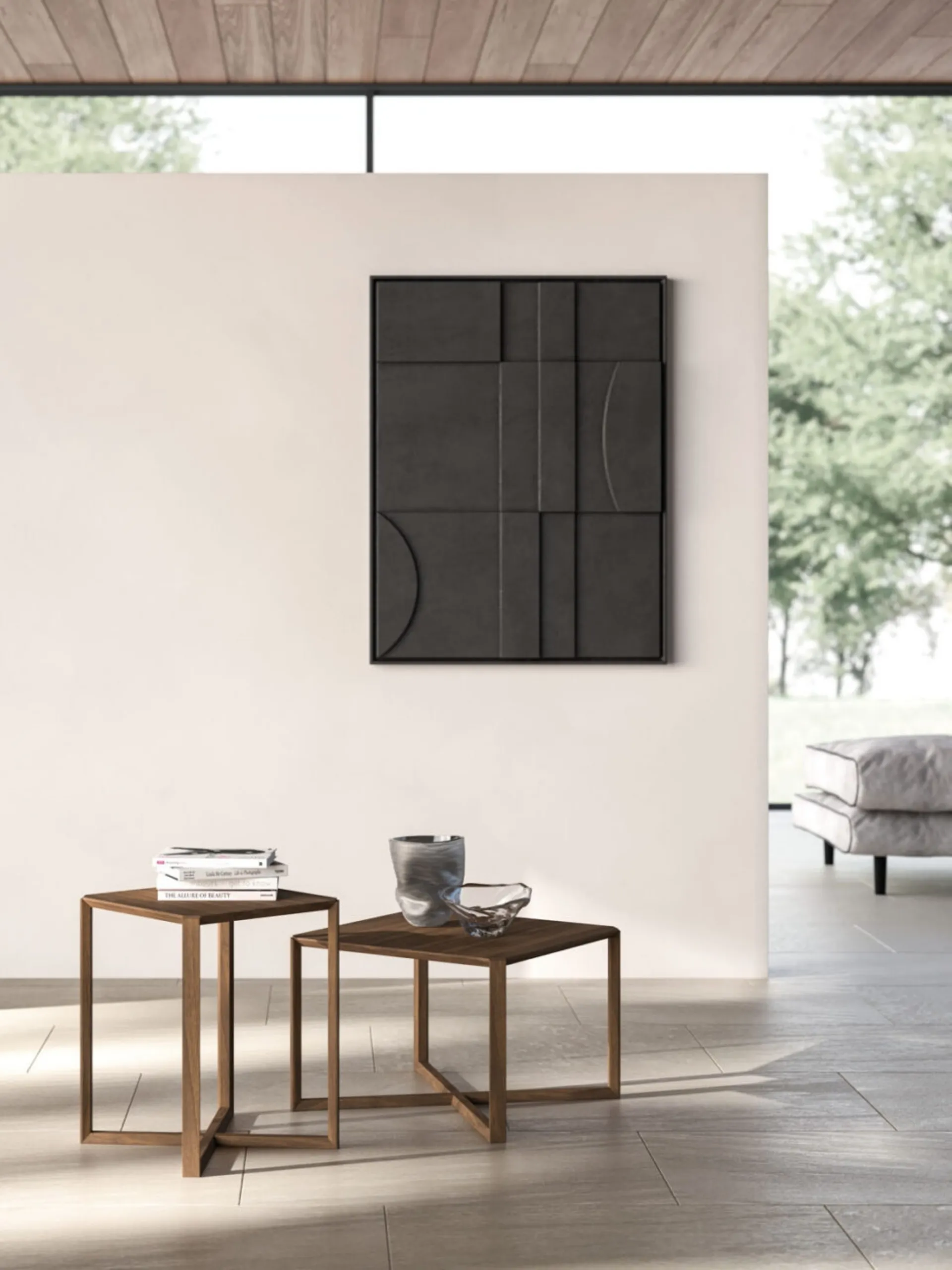 The high aesthetic value compositions of the Orme brand enhance the habitat with their colors and style, recreating unique furnishing atmospheres. In our showroom, you can personally view the quality of the modern wooden coffee table models from the brand, just like this solution in the photo. Accessories and coffee tables personalize the home furnishings, filling the space in a useful way and making it cozy and visually appealing. Very versatile and multifunctional, modern wooden accessories serve various purposes: they complement the practicality and aesthetics of the environment.