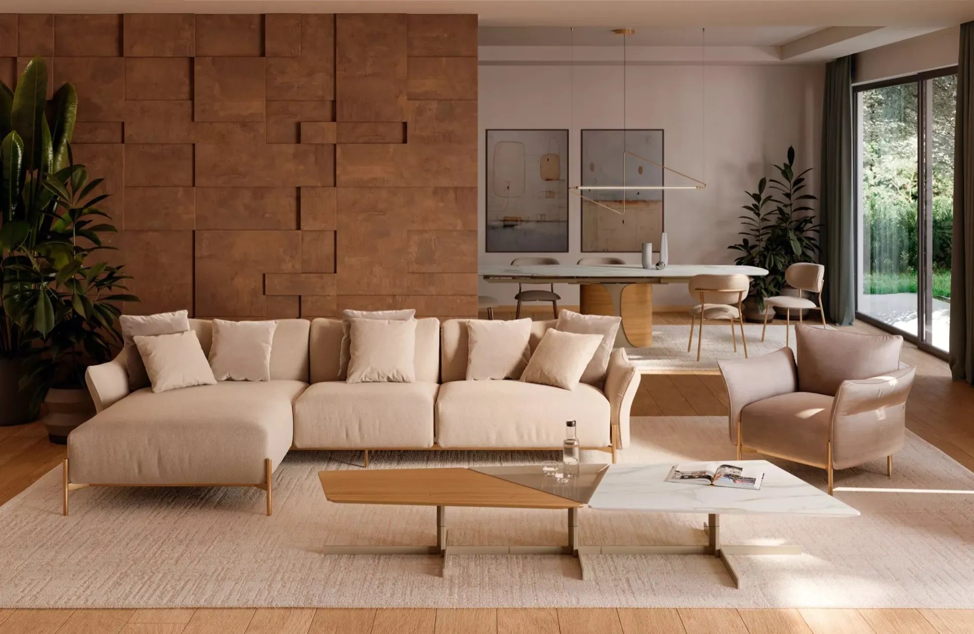 Compliments and carpets personalize home furnishings, occupying space in a useful way and making it welcoming and beautiful to look at. The Balance carpet by Bontempi in fabric will add character and charm to an interior furnished with furniture and accessories with modern references. In our showroom, you can personally view the excellence of the brand's modern fabric carpet models, just like this proposal in the photo. Bontempi's compositions of great charm personalize the environment with color and taste, recreating unique furnishing atmospheres.