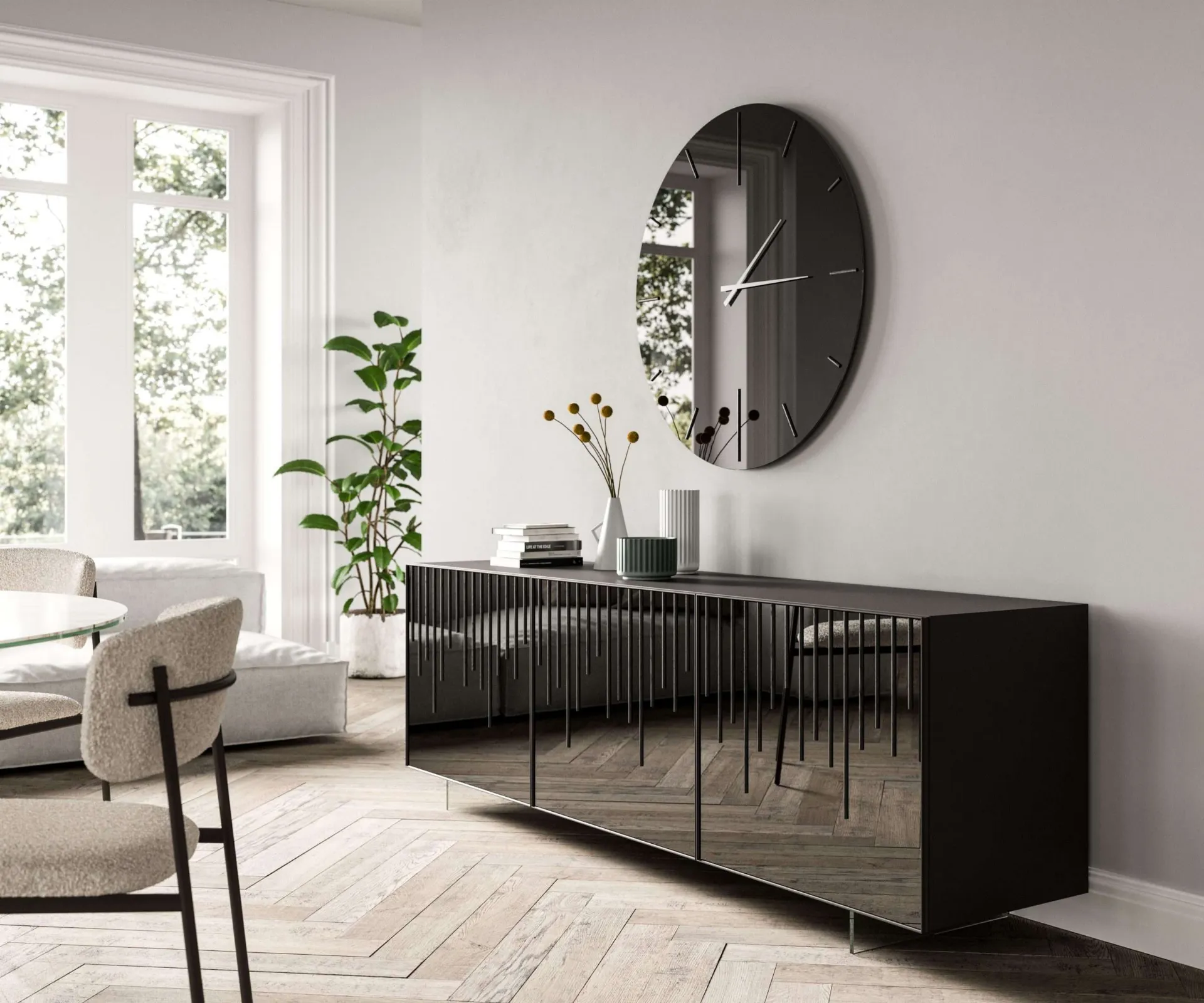 Class and functionality characterize the multiple solutions of the brand, including this Mirror Clock solution by Ozzio Replay in high-value decorative glass. To best complete indoor spaces, a touch of style can be achieved by incorporating some quality Accessories among the rest of the furniture. From the bedroom to the living room, these accessory elements prove to be essential objects to perfectly complement the practical and aesthetic qualities of the rooms. The Ozzio brand is synonymous with excellence and style: visiting us means trusting in the brand's years of expertise and dedication. In the store, you will be able to see firsthand all the most original compositions of the renowned brand, including those complete with modern glass clocks.