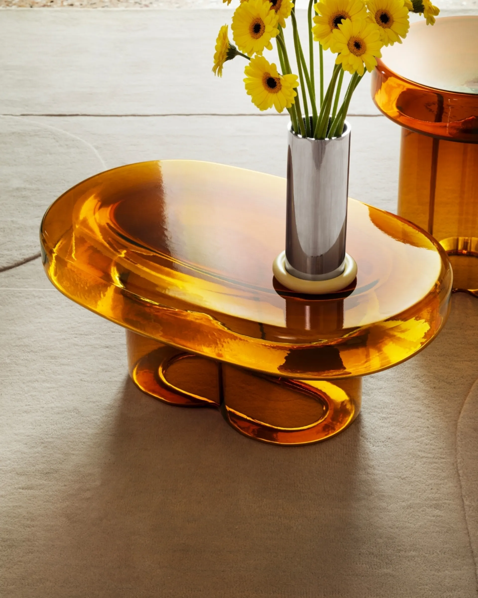 Very versatile and multifunctional, glass design complements serve different functions: they enhance the practical qualities and aesthetics of the environment. The Miniforms Soda Oval glass coffee table will add personality and charm to an interior furnished with furniture and accessories with design references. The brand Miniforms' furniture compositions add color and style to the environment, recreating unique furnishing atmospheres. Complements and coffee tables personalize the home furnishing, occupying space in a useful way and making it very functional and beautiful to look at. In our showroom, you can personally see the excellence of the brand's glass design coffee table models, just like this solution in the photo.