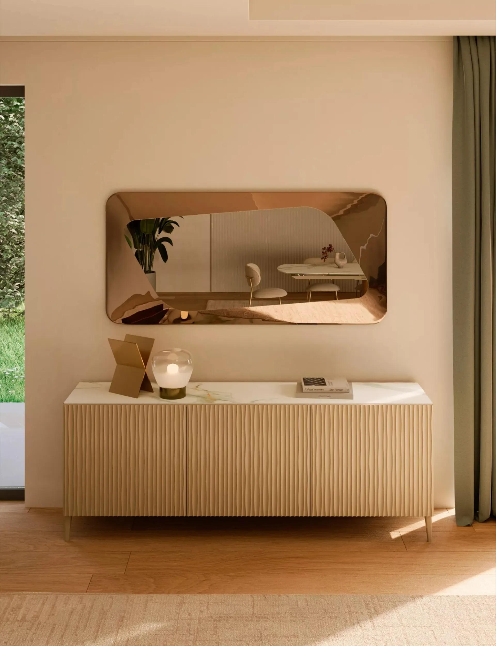 How to match accessories with furniture? With different proposals from Bontempi, you will have at your disposal tones and textures to express your interior design creativity. Bontempi's frameless Focus Mirror: it fits perfectly in interior designs with a design flair, combining great functionality and style. Design accessories and mirrors add great value to our homes' decor and are also multifunctional and beautiful to look at. Our designers will guide you in selecting a good mirror model, so that it can complement the practical qualities and aesthetic value of the environment.