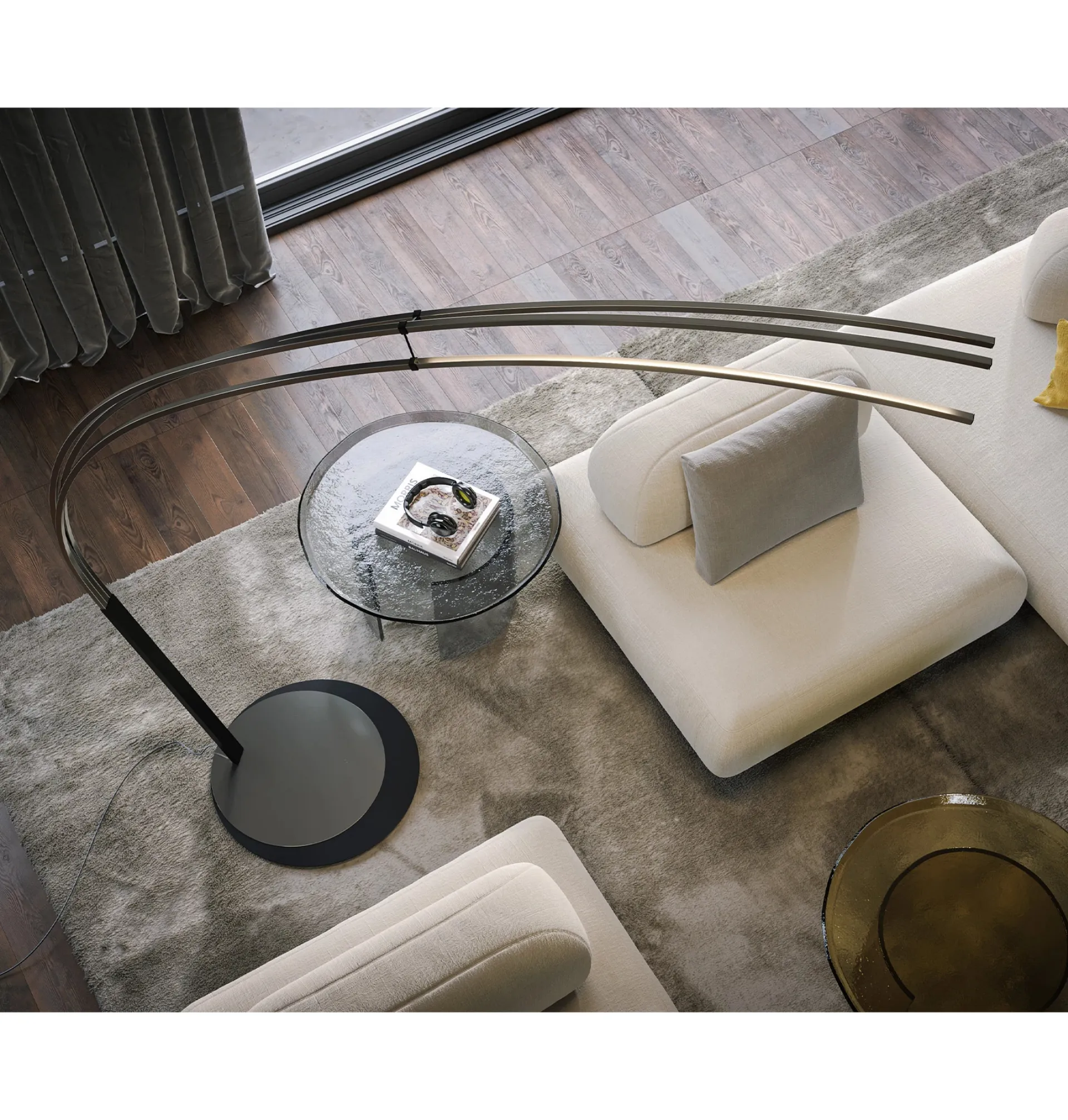 The universe of lamps has its own unique alphabet but also interacts with home decor, mixing functionality with aesthetics. The lamp in the photo diffuses a beautiful light and with its shapes, it fits into spaces with multiple moods, always highlighting the aesthetic value to the fullest. Tonin Casa presents multiple indoor floor lamps that characterize spaces with a certain style, always using precious materials. It does not impose stylistic constraints: The Cortina floor lamp by Tonin Casa in metal stands out for the quality of materials and technological content.