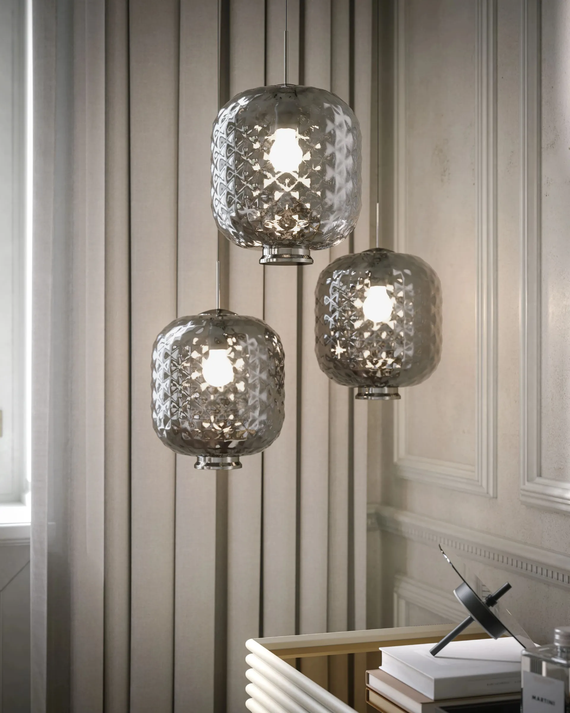 Keep in mind that lamps enhance the decor of your home by creating charming atmospheres, but they also accompany you in all the gestures of everyday life. Come and see our line of indoor pendant lamps and we will ensure your complete satisfaction upon completion of the project. Light sources illuminate every gesture of the days at home: each interior requires a different lighting, suitable for its housing issues. With the brand's furnishing solutions, such as this proposal of the Lantern Pendant Lamp by Tonin Casa in glass, you have the opportunity to perfectly illuminate your home by mixing practicality and design. Tonin Casa guarantees the highest quality in terms of aesthetic content and technology for each lamp, equally important in the lighting sector.