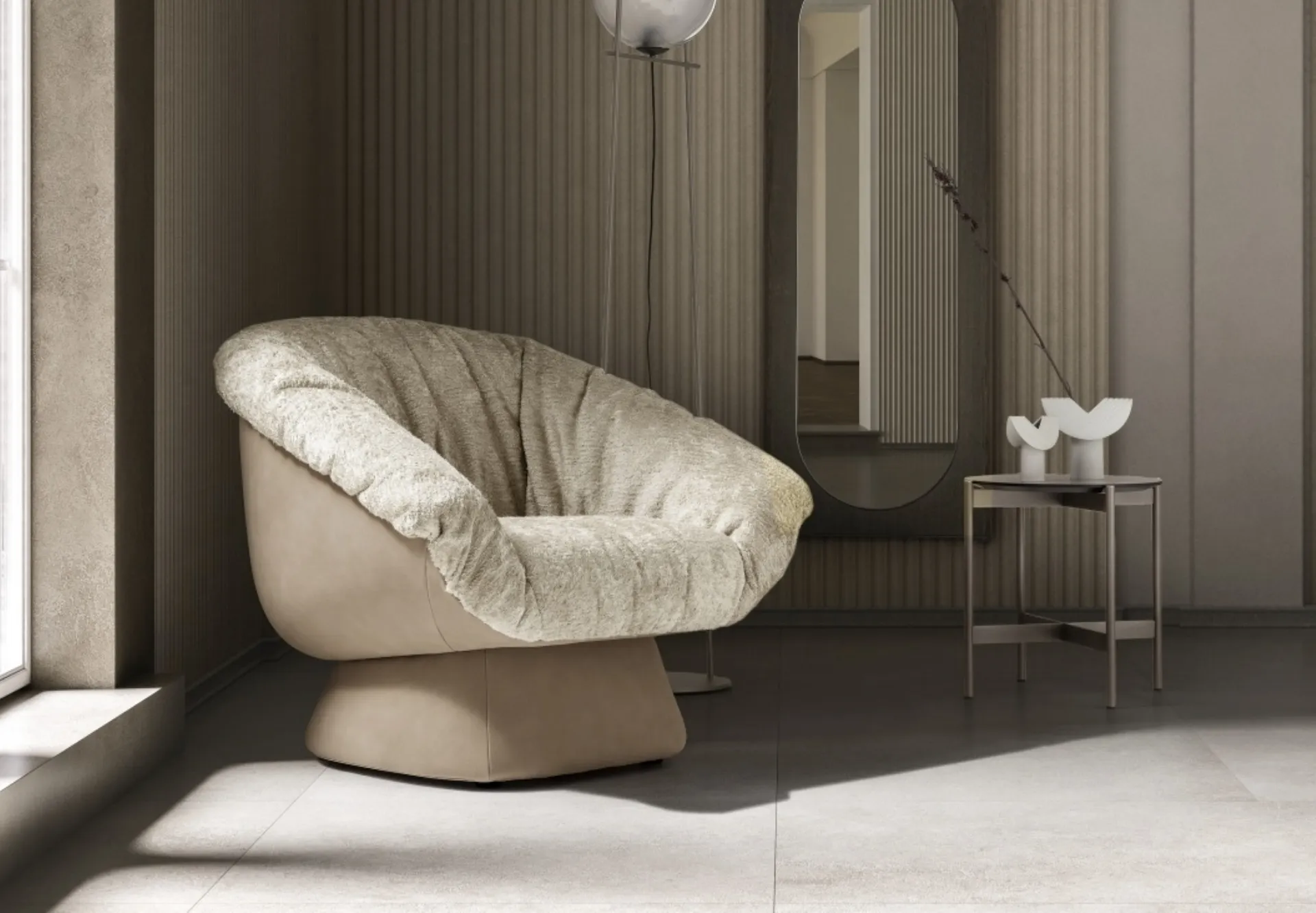 A wide range of designer armchairs awaits you in our showroom. In the picture, you can see one of the models by Ditre Italia, a specialist in the production of sofas and armchairs for the living room and other areas of the house. If you desire a fabric model, now discover a rich catalog of solutions with high aesthetic value. Completing the look of your home is no small feat: Armchairs come to our rescue. Ditre Italia's Hall Armchair: all products from the brand guarantee durability over the years, quality of materials and coverings, bold shapes, and a unique design.
