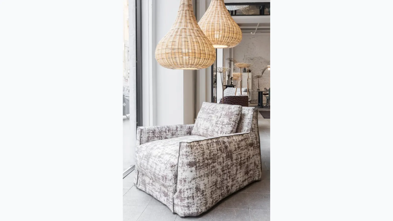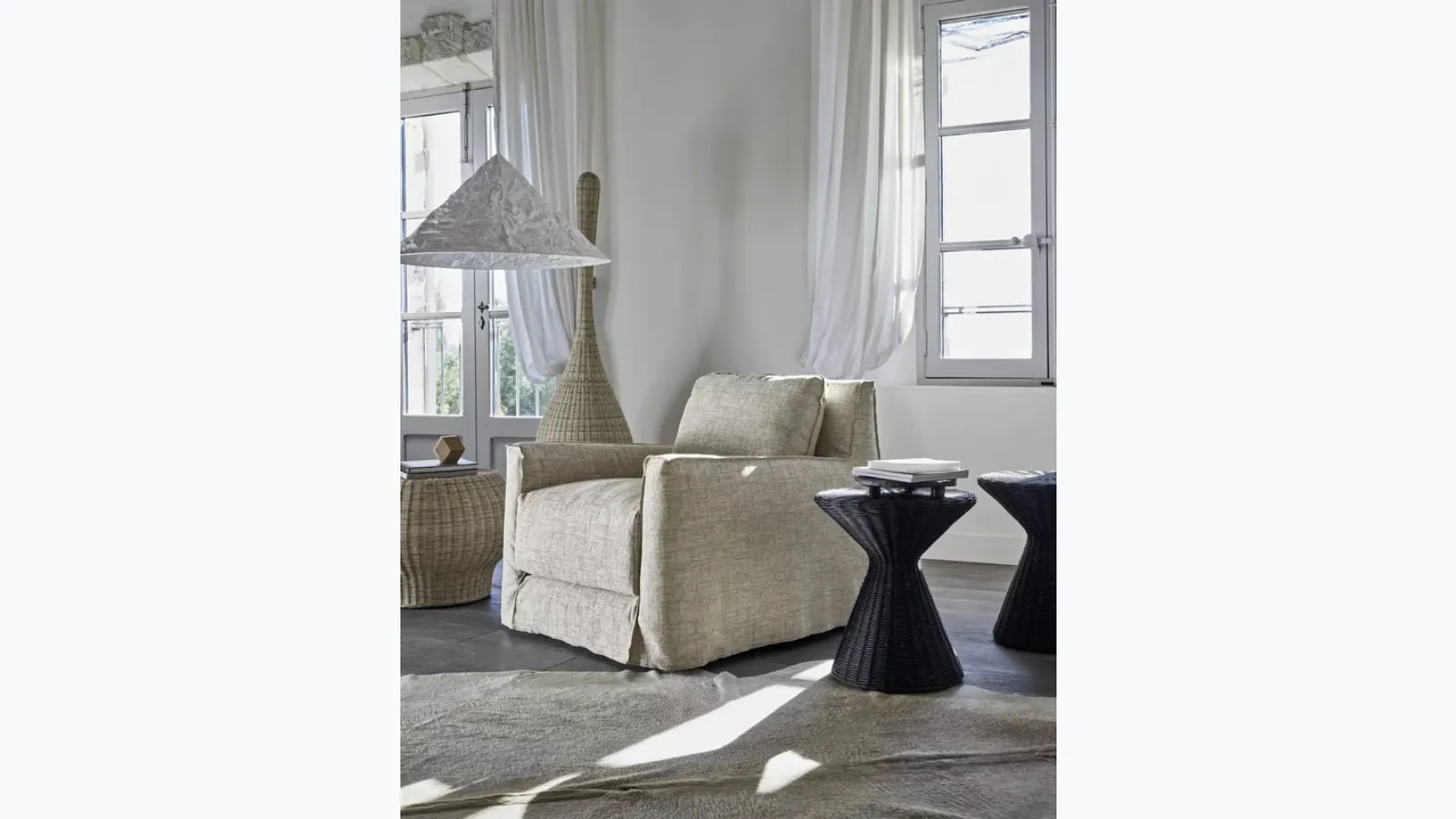 Armchairs are truly essential design elements in various rooms, from the living room to the bedroom, environments that should be carefully designed. Loll 05 armchair by Gervasoni: let yourself be tempted by our modern proposals. Upholstered furniture is furnishings around which you can enjoy moments of relaxation and socialization. Gervasoni, a leader in the production of armchairs and sofas, has created a refined and elegant fabric covering for the model in the photograph. Discover a wide variety of upholstery options and you can recreate the spaces you have always desired.