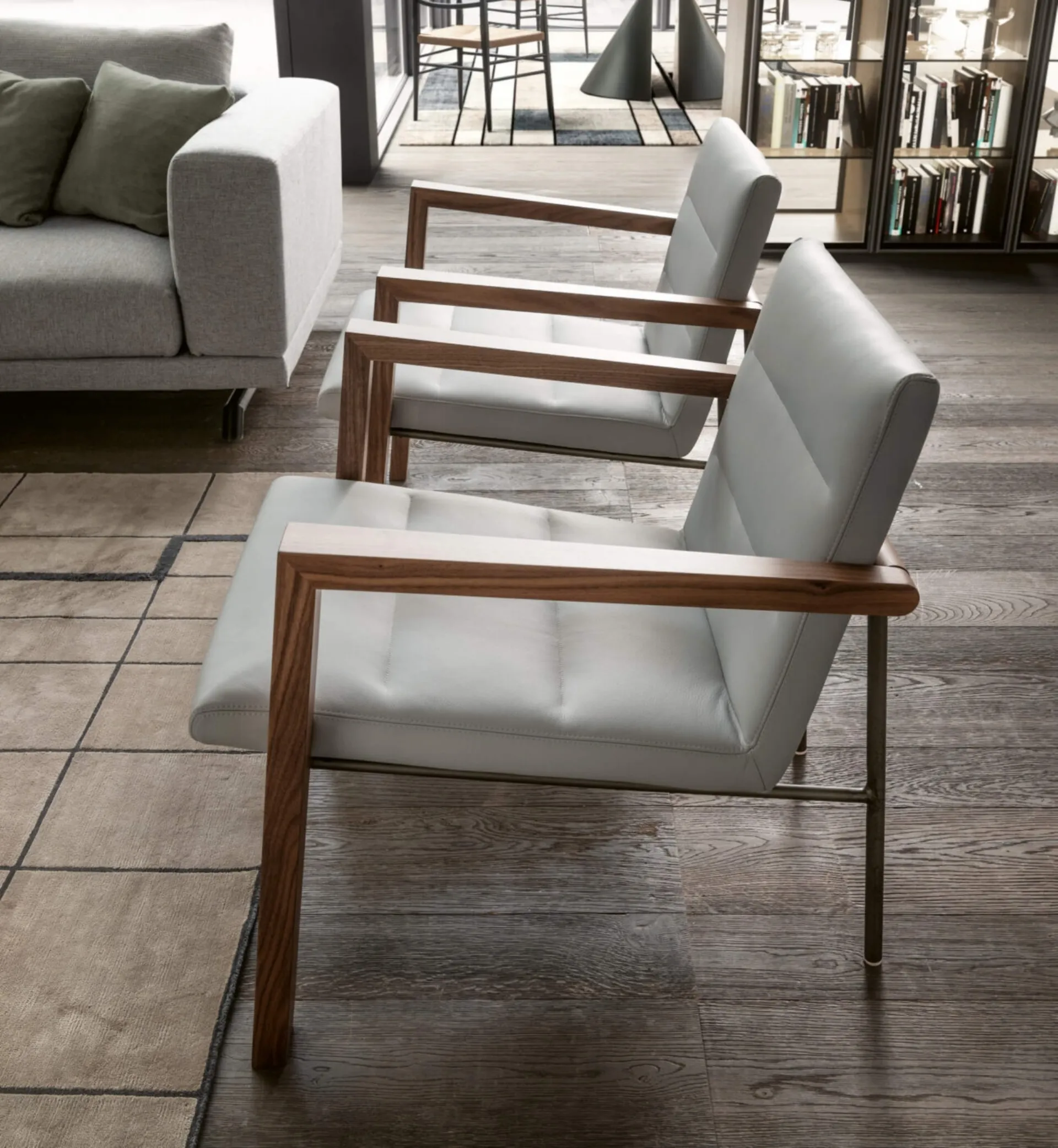 Discover a wide variety of upholstered furniture and you will be able to create the spaces you have always dreamed of. Presotto, a specialist in the creation of leather armchairs and sofas like the model in the photograph. Mimosa armchair by Presotto: be inspired by our modern proposals. Armchairs are a truly essential design element in various rooms, from the living room to the bedroom, environments that should be decorated with care. Upholstered furniture are furnishing modules around which you can enjoy moments of relaxation and socializing.