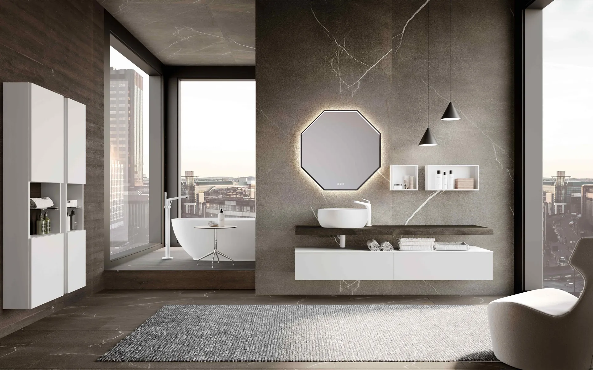 Azzurra designs proposals for modern bathroom furnishings with suspended bathroom furniture that combines unique design and practicality, as this interior requires. With the proposals we offer, you will ensure well-made and trendy furnishings even for the bathroom, which should be furnished with care, practicality, and design. The Lime 0 Push&Pull 031 suspended bathroom cabinet model by Azzurra in matte lacquer belongs to the complete range of bathroom furniture by the brand, always of great aesthetic value. Innovative finishes and a rich variety of colors guarantee maximum customization and high-quality materials that resist different substances. In the showroom, you can see and touch the most beautiful furnishing compositions of the renowned brand: we look forward to furnishing your bathroom together.