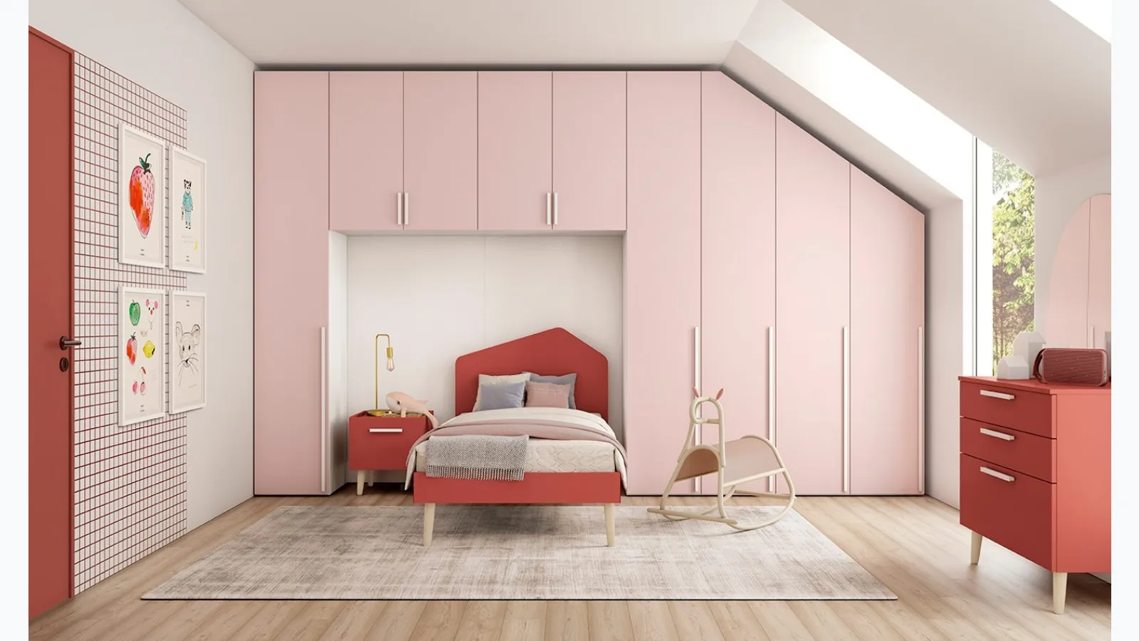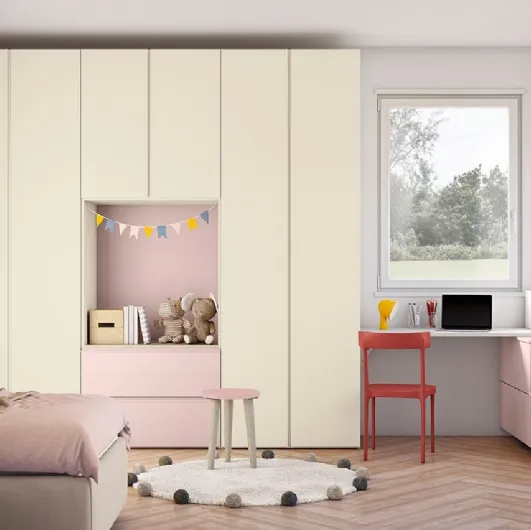 If you are looking for design ideas to organize your children's room effectively, we present to you the Golf K40 Kids' Bedroom by Colombini Casa with a melamine finish. Colombini Casa offers a wide range of custom accessories: you will find a bed, wardrobe, work table, chairs, and bookshelves. Bring design and vibrant colors into the dedicated space for children with this solution, one of Colombini Casa's bunk beds for girls. Trust us with the furnishing of your young ones' room: in our showroom, we present all the most exclusive modern furnishing compositions for their room. This melamine proposal optimally combines the qualities of functionality and aesthetics in the bedroom, as it is capable of combining functionality and ergonomics.