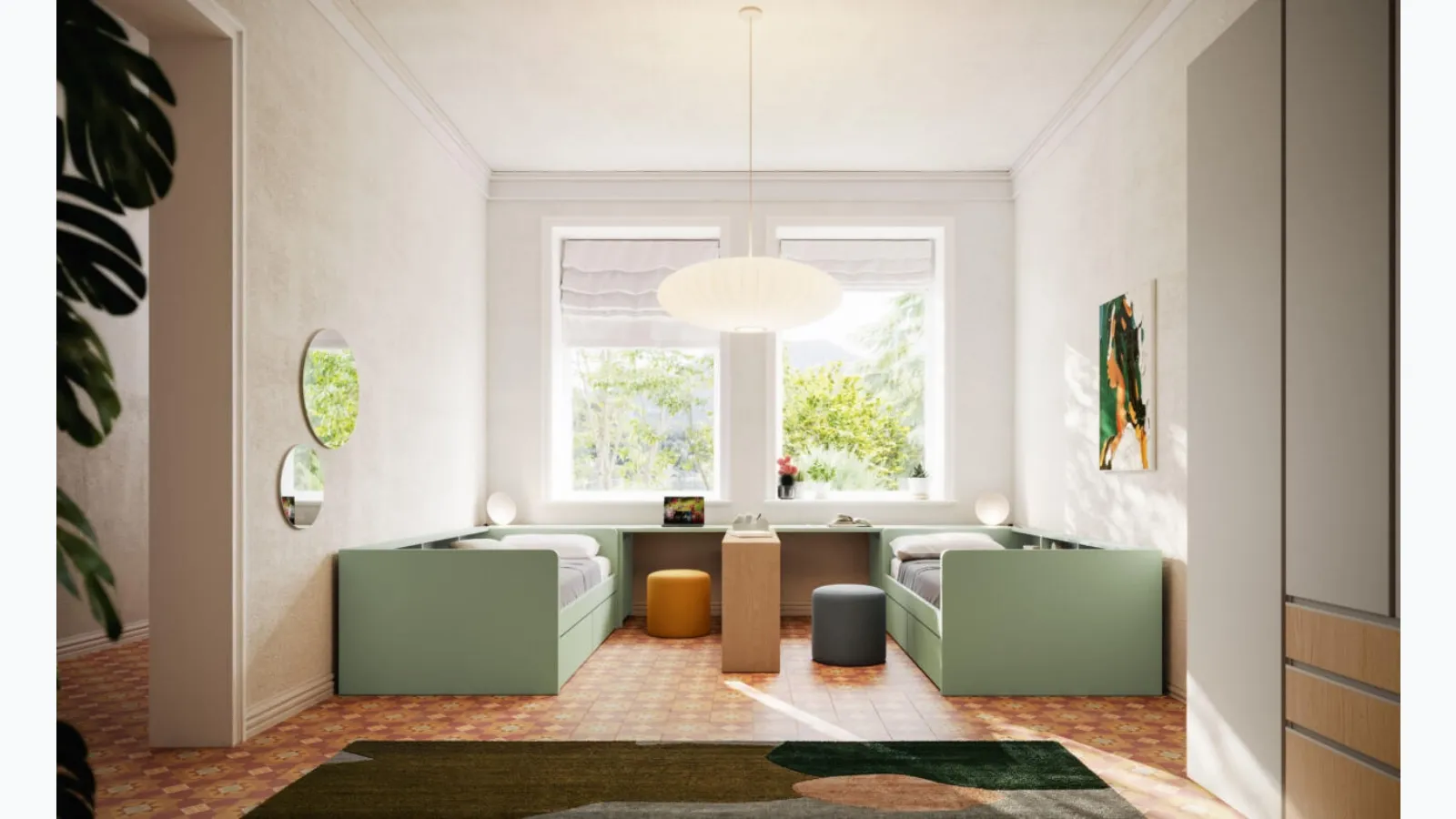 The bedrooms of our children are the space where they will grow up playing and dreaming, so it is essential that the space is practical. In our store, we guide you from choosing the furniture for the room to designing the place where your children will grow up, playing and dreaming. Our children spend many hours a day in their bedrooms: make them suitable for studying, playing, and sleeping every day. With the Cameretta Composizione Letto a Terra 09 by Mistral in melamine, you will ensure a perfect balance of functionality and ergonomics, ideal for your children's room. We present in our showroom various modern modular bedrooms for boys from the brand, ideal for accompanying them during their growth.