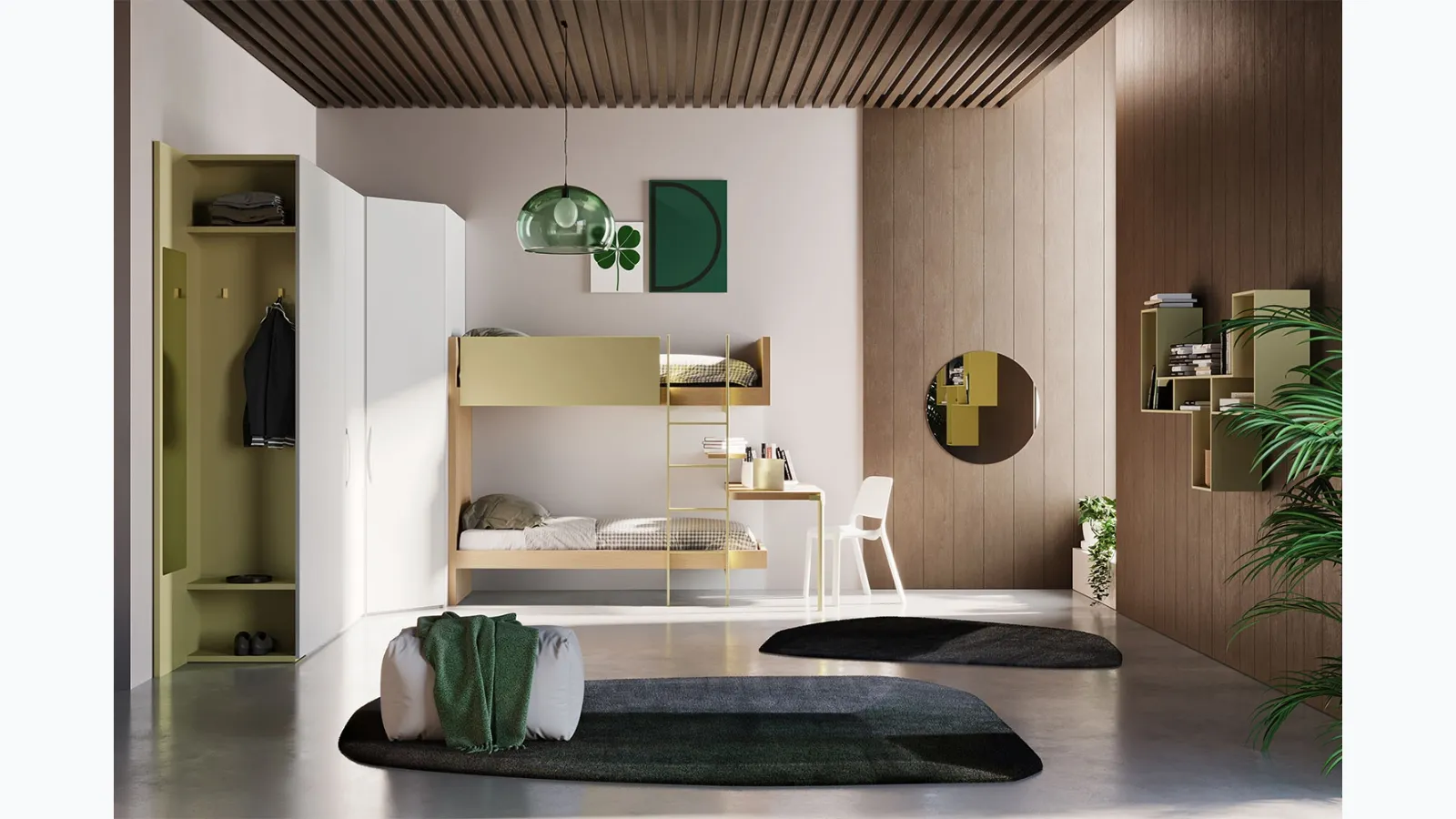 Visiting us means seeing in person all the most original solutions for children's bunk beds with a matte lacquered finish that we present in our store. The well-known brand offers various modern solutions, so the children's bedroom will be an environment where kids will be happy to grow and rest. To design the bedrooms optimally, Clever proposes design and multifunctional solutions: there are many activities that your children can carry out there. With the Start S24 bunk bed room by Clever, you will make your children's room a truly livable and safe environment, which will follow them as they grow up. This solution with a matte lacquered finish, among those with bunk beds for children by Clever, meets the needs of adults and the tastes of children.