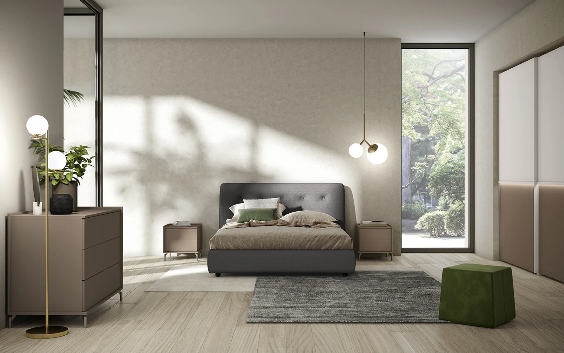 If you want to furnish modern spaces, we are waiting for you to show you our Home Furnishing profile to create your custom concept. Discover in store a rich catalog of upholstered beds, furniture, and accessories for the bedroom from the best brands. Reliability of finishes and great comfort are the ingredients that distinguish all the products of the company, including the fabric bed in the photo. With the Adagio Bed by Colombini Casa from the renowned brand, a leader in the sector, you can embellish your bedroom ensuring comfort, practicality and a clean design.