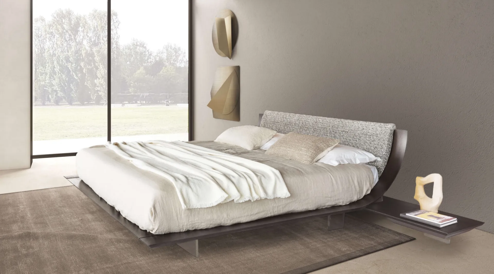 Discover in our showroom a wide range of upholstered beds, furniture, and accessories for the bedroom from the best brands. With the Presotto Aqua Upholstered Bed from the well-known and reputable brand, a specialist in the field, you can enhance your bedroom with comfort, practicality, and a clean design. If you wish to furnish designer spaces, we are here to show you our range of home furnishings to create your tailor-made project. Quality materials and great comfort are the key features of all products from the brand, including the fabric bed shown in the photo. If you desire to create an intimate and peaceful atmosphere, the model shown in the photo is perfect for you: in the bedroom, you should create a calming atmosphere to recharge your energies every night.