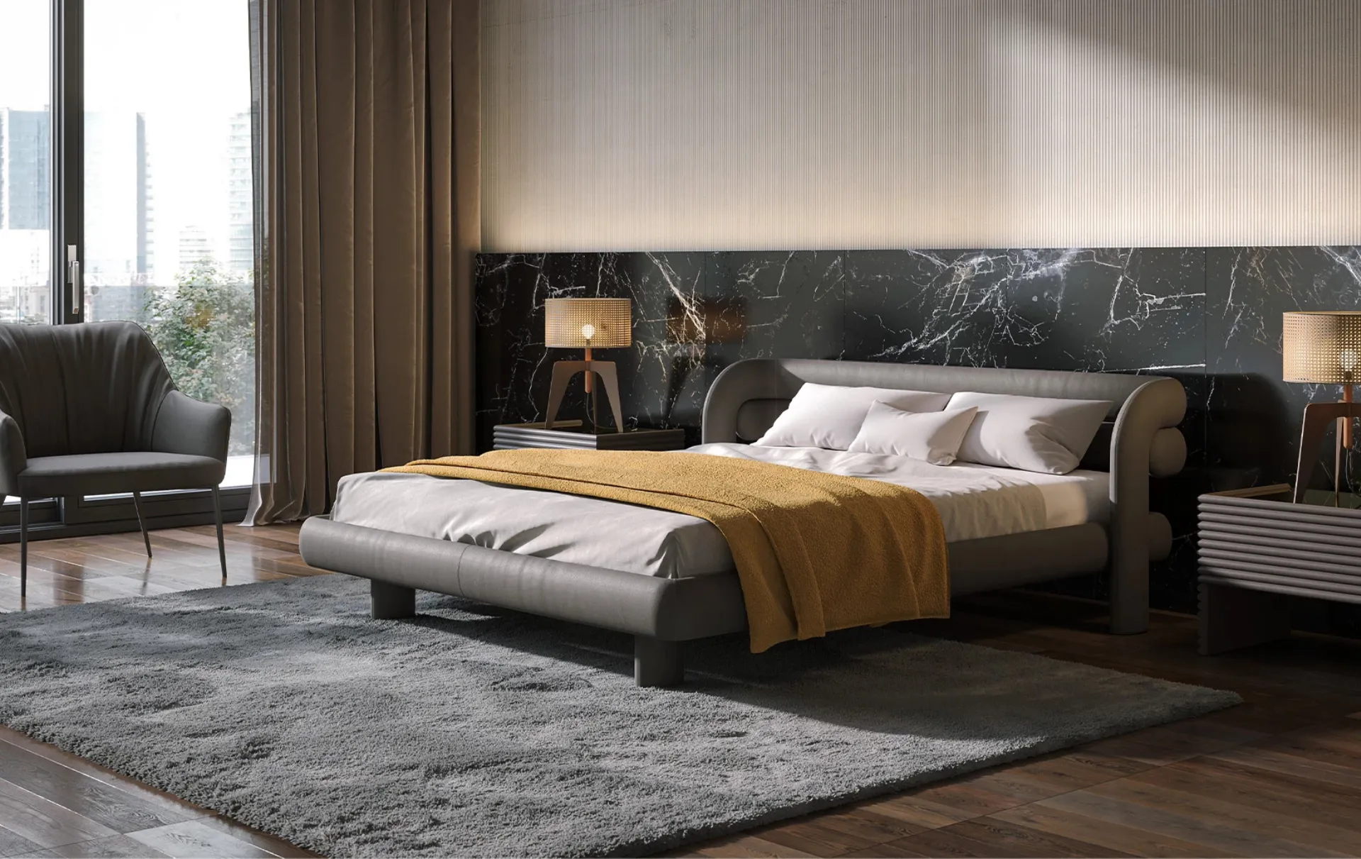 When choosing a good bed model, carefully consider its dimensions, finishes, shape, and style in relation to the rest of the furnishings. Choose colors and finishes and realize your furnishing concept in the bedroom, designing it just as you have always imagined. The Bull leather bed by Tonin Casa creates a welcoming and comfortable space in every bedroom, ensuring you the deepest sleep and a unique design. The company's upholstered double beds, a leader in the production of home furnishings for the sleeping area, are designed to be paired with furniture and accessories of all kinds, such as wardrobes and bedside tables, lamps and floor lamps.