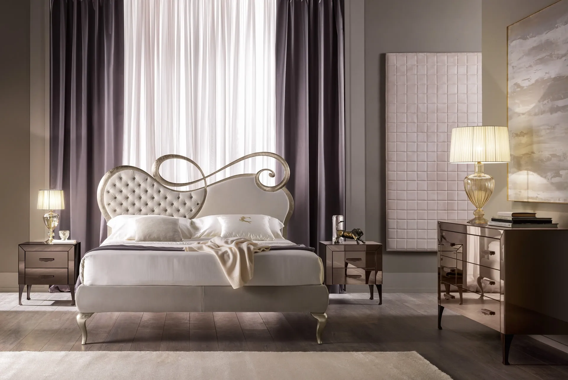 The Classic Chopin bed by Cantori creates an intimate and comfortable space in any bedroom, ensuring total relaxation and a unique style. When choosing the right type of bed, carefully consider its dimensions, materials, shape, and style in relation to the rest of the furniture pieces. The brand's upholstered double beds, a leader in the production of home furnishings for the sleeping area, are designed to be paired with furniture and accessories of all kinds, such as wardrobes and chests of drawers, lamps and floor lamps. Choose colors and textures and create your bedroom design project, designing it just as you've always dreamed. If you prefer a faux leather solution, the model shown in the photo is characterized by durable materials and sharp lines, which invite you to enjoy a complete and rejuvenating rest.