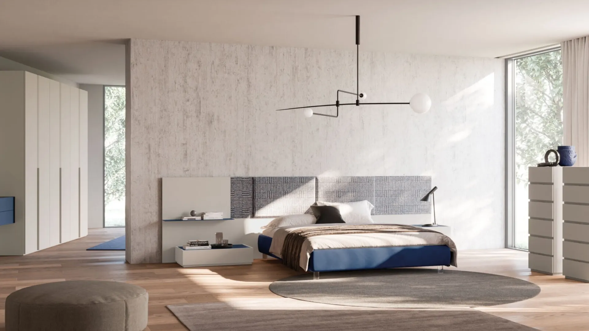 If you want a solution in fabric, the model visible in the photo is characterized by precious materials and decisive shapes, which invite you to have a deep and restorative sleep. Choose colors and textures and create your own furnishing concept in the bedroom, designing it just as you have always imagined. When choosing the right type of bed, carefully consider its size, materials, shape, and style compared to the rest of the furniture. The upholstered double beds of the brand, a specialist in the production of home furnishings for the bedroom area, are designed to be matched with furniture and accessories of all kinds, such as wardrobes and chests of drawers, bedside tables, and floor lamps. The Giako Night 09 bed by Orme creates a welcoming and comfortable space in any bedroom, ensuring you the best rest and a unique style.