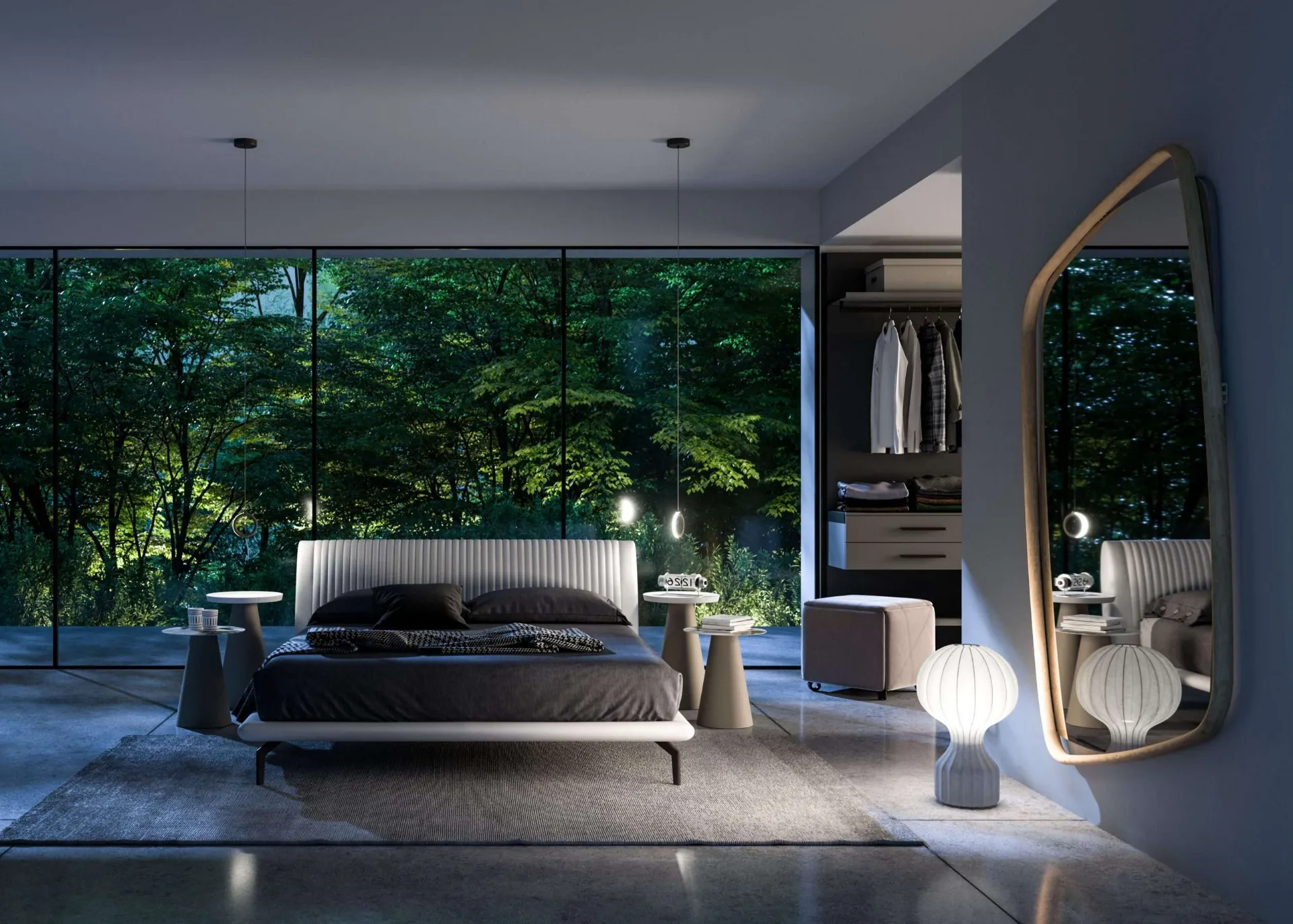 The bedroom is the room in the house that best reflects the personality of those who inhabit it, the ultimate space dedicated to relaxation, unwinding, and privacy. If you want to ensure total comfort in your moments of rest, choose designer double beds in leather like the model visible in the photo. Discover a rich range of upholstered beds from the best Furniture House brands available in-store and optimize your bedroom. The Globo leather bed by Ozzio is one of the most original solutions from the brand, a specialist in rest, capable of ensuring practicality, comfort, and a unique design. On our website, you will find the most valid proposals from the best brands specializing in bedroom furniture, with a wide range of customization options in terms of shades and combinations, accessories, and much more.