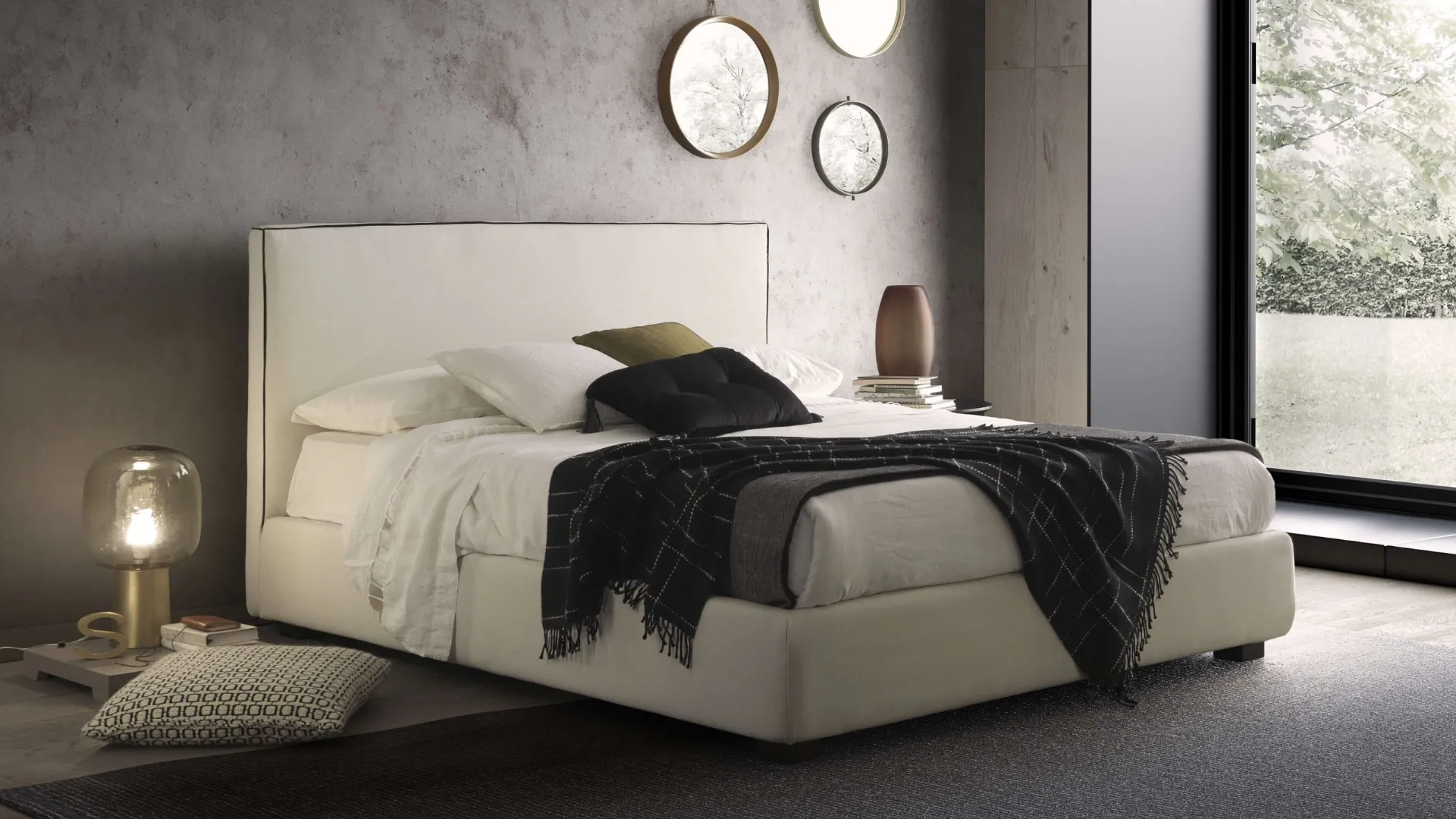 The renowned brand is the specialist in rest: a wide range of double upholstered models, also made in fabric, awaits you in our showroom. Beds are the centerpiece of every bedroom, essential furnishings to ensure peaceful and restorative sleep and optimal support for the spine. With us, you can create the bedroom just as you dreamed it, functional and aesthetically pleasing, complete with a wide range of modern accessories. Bed with Gross Grain headboard by Valentini: it will prove ideal for modern spaces, a solution designed to ensure the deepest sleep every night. With Valentini's double beds in fabric, including the model in the photo, you will have a beautiful and very functional piece of furniture in your bedroom.