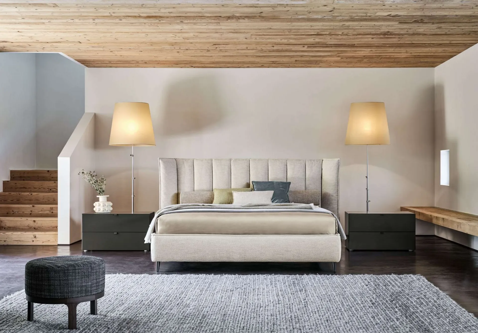 With the Twils Opéra double bed with headboard from the well-known and renowned brand, a specialist in the sector, you can enhance your bedroom by ensuring comfort, functionality, and clean design. Durability of materials and great comfort are the aspects that distinguish all products of the brand, including the fabric bed in the image. Discover in our store a wide range of beds with headboards, furniture, and accessories for the rest area from the best brands. If you want to design modern spaces, we are waiting for you to show you our Home Furnishing design to create your project tailored to your needs. If you want to create an intimate and relaxing atmosphere, the model shown in the photo is perfect for you: in the bedroom, you should create a relaxing atmosphere to recharge your psychological and physical energies as you deserve.