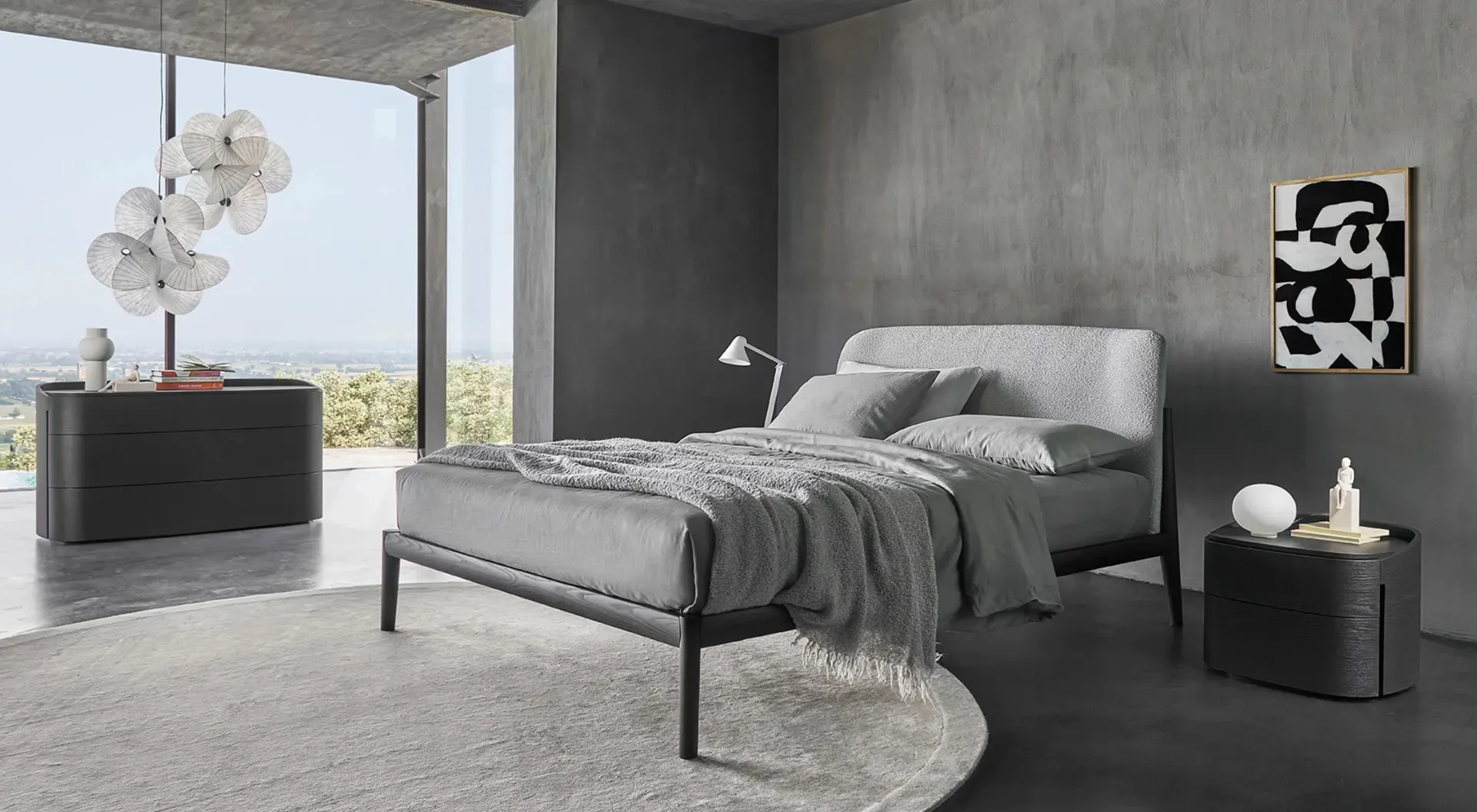 The Sissi Bed by Sangiacomo recreates a welcoming and comfortable space in every bedroom, ensuring total relaxation and a unique design. Choose shades and textures and bring your furnishing concept to life in the bedroom, designing it just as you had imagined. If you desire a fabric solution, the model visible in the photo is characterized by quality materials and clean lines, inviting you to enjoy a deep and restorative sleep. The upholstered double beds from the signature brand, a leader in Home Furnishings for the bedroom, are designed to be paired with furniture and accessories of all kinds, such as wardrobes and bedside tables, lamps, and floor lamps.