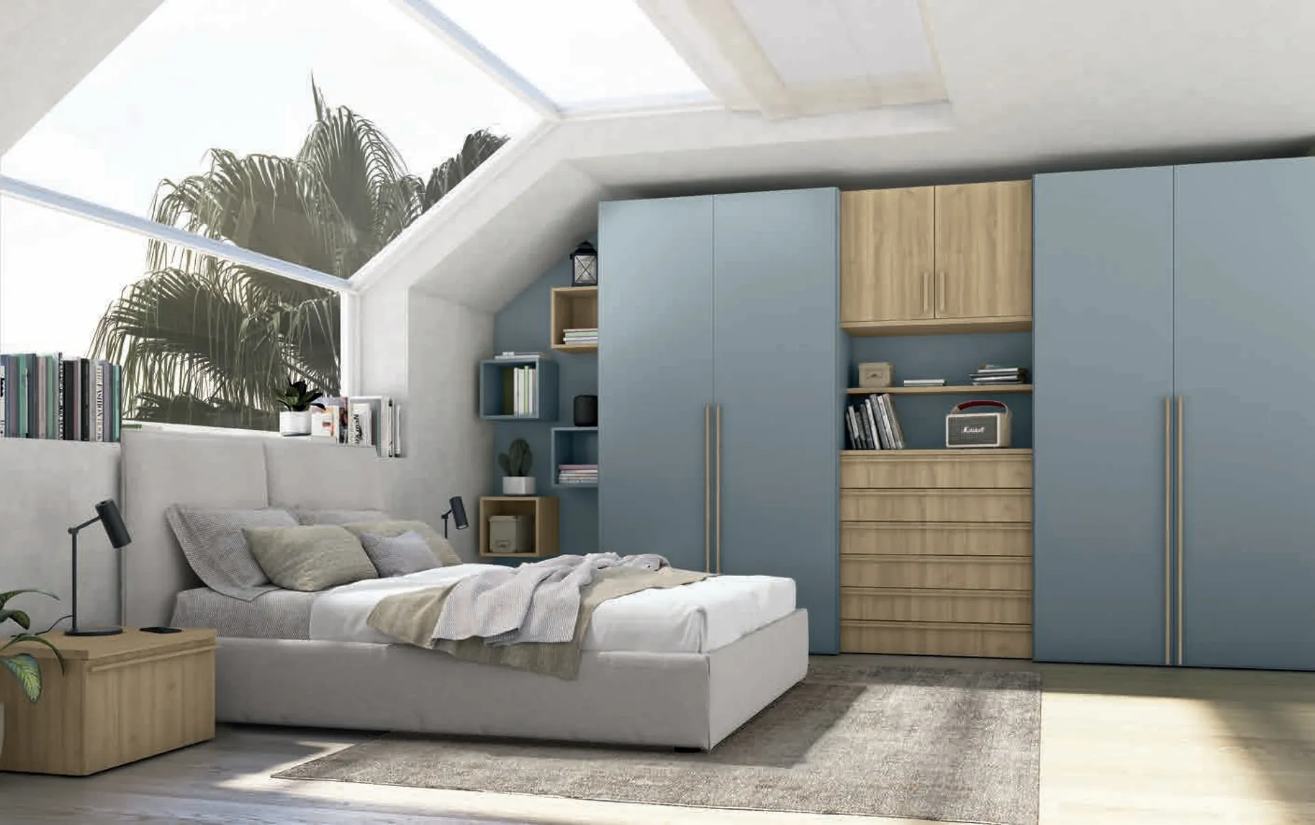 Durability of materials and great comfort are the aspects that distinguish all products of the brand, including the fabric bed in the image. If you wish to create an intimate and calming atmosphere, the model visible in the photo is perfect for you: in the bedroom, you will need to create a calming atmosphere to regenerate your energy every night. With the Volo Twin Bed by Colombini Casa, a renowned brand and leader in the industry, you can enhance your room with comfort, practicality, and a clean design. Discover in our showroom a rich catalog of upholstered beds, furniture, and accessories for the bedroom from the best brands. If you want to furnish modern spaces, we are here to offer you our Home Furnishing design to realize your custom concept.