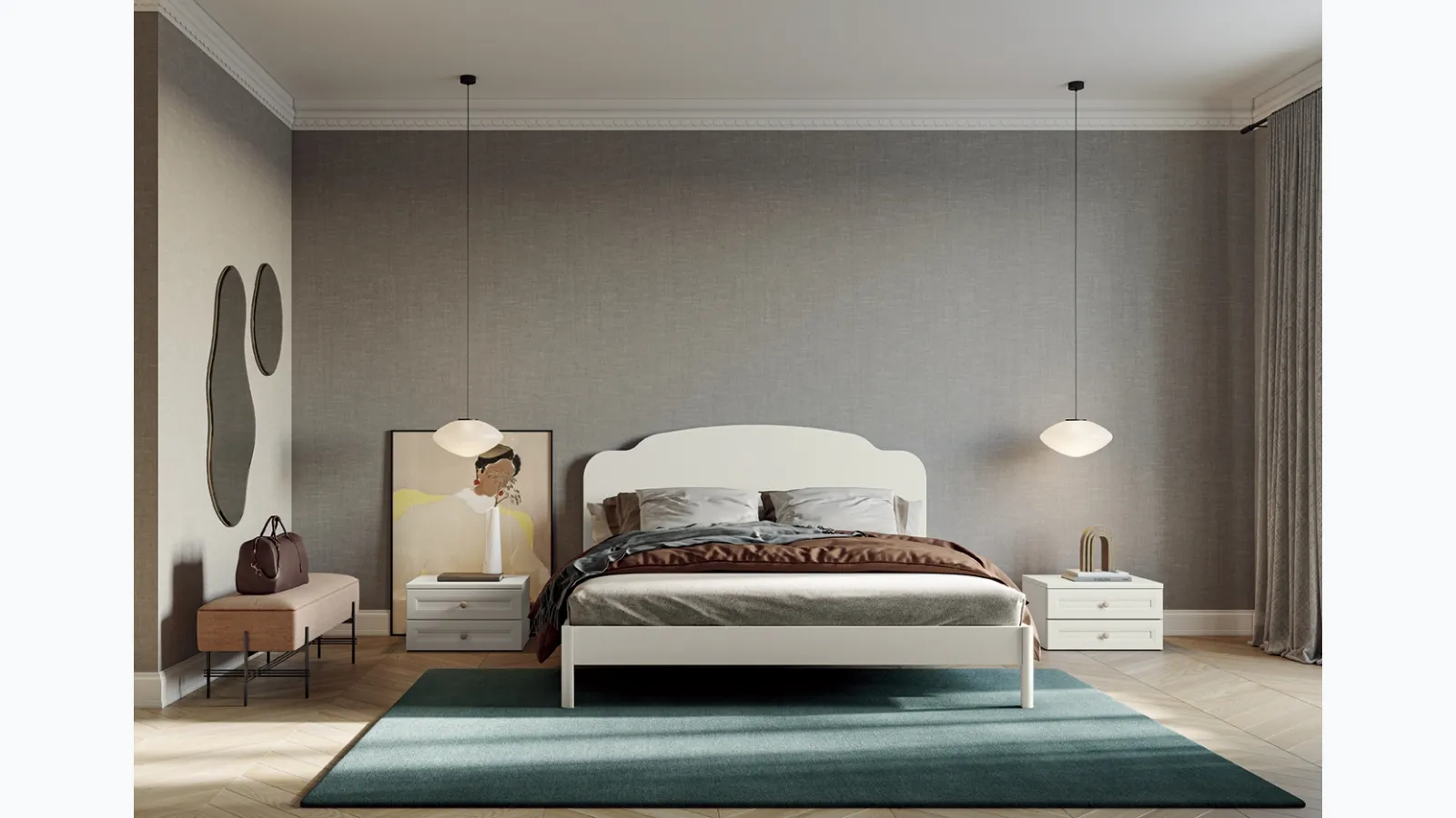 The melamine models from the Colombini Casa brand, specialist in the production of wardrobes and chests of drawers, allow for creating personalized combinations or having features in balanced contrast with the rest of the furniture. Get information on our line of bedroom sets from the best brands to organize the environment with a unique design. Bedside tables are some of the necessary furniture and accessories in every sleeping area, as they allow you to complete the spaces by enhancing every corner. Arcadia Simply bedside table by Colombini Casa: it is a type of eclectic storage furniture capable of providing functionality and great aesthetic value in classic spaces. Thanks to these furnishing accessories, it is possible to arrange small items for daily use or display accessories.