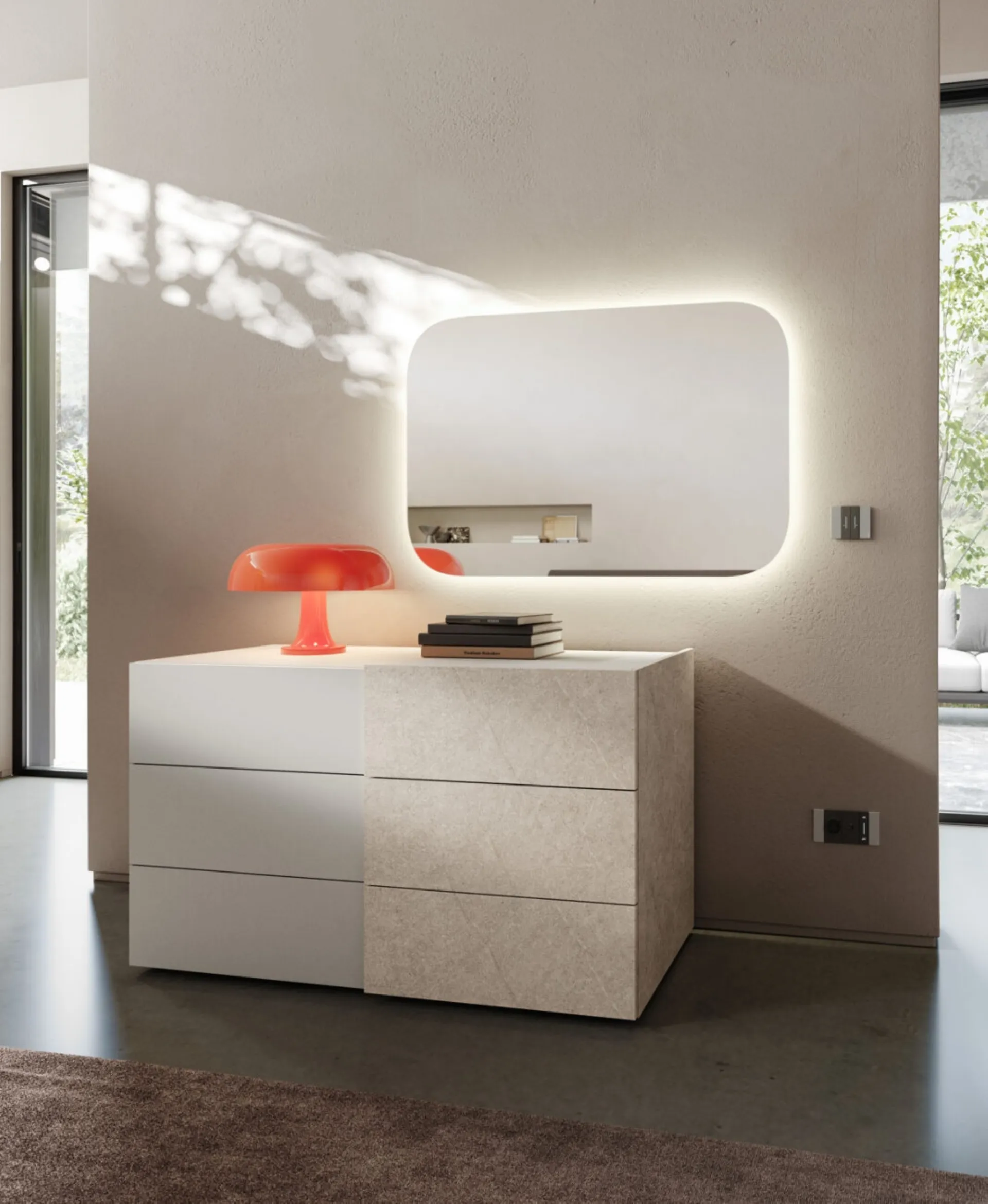 Bedside tables are furnishings capable of completing the bedroom area by providing a definitely useful and versatile support area. Durable materials and excellent craftsmanship for the Double Chest of Drawers by Orme in melamine, available in the showroom with the other various offers from the brand, to make the bedroom a place that reflects your personality.
