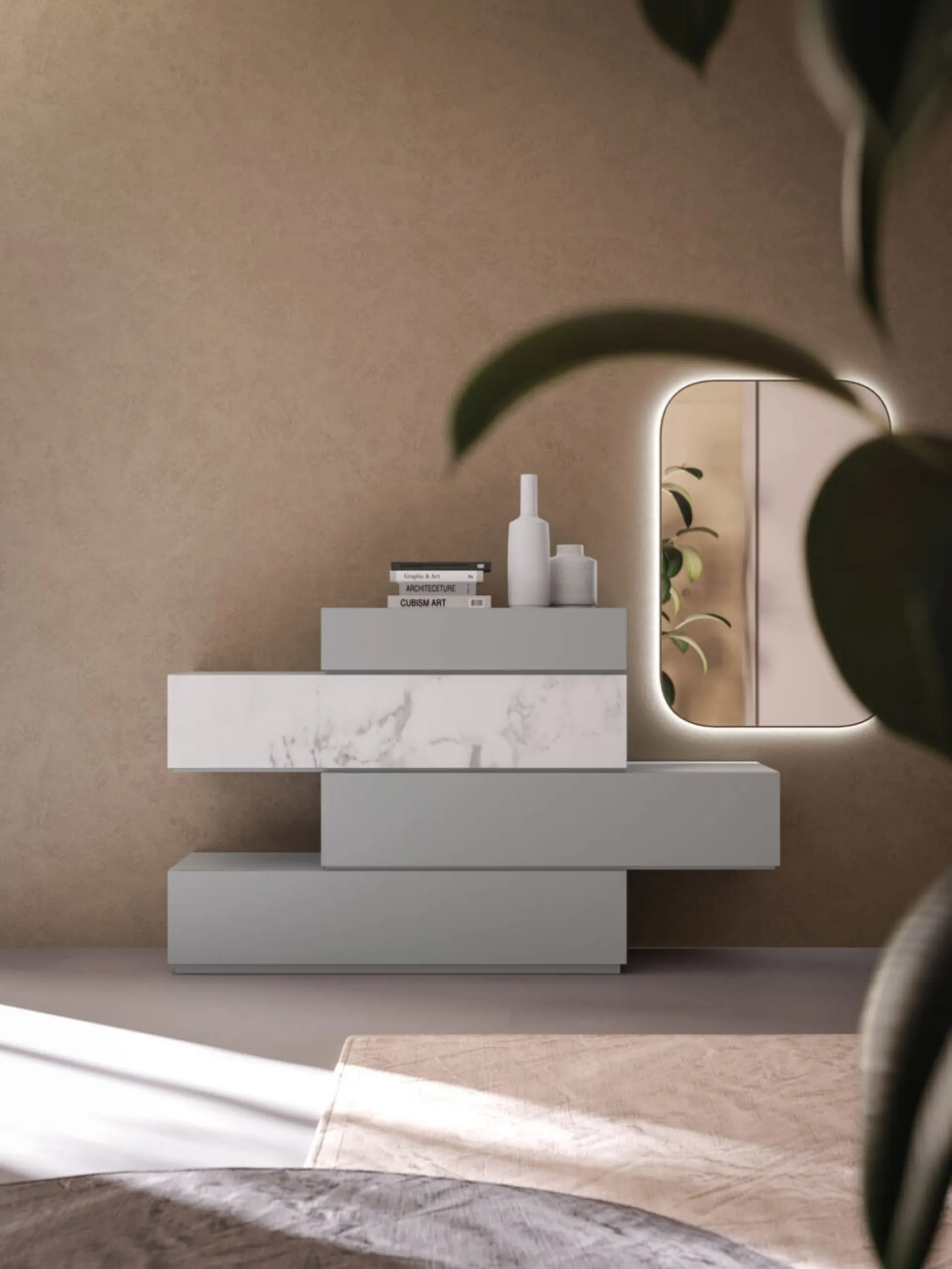 Optimize your spaces by choosing compositions of coordinated elements or create original combinations of style and tones with the range of furniture and accessories for the bedroom that we offer, such as the melamine model shown in the photo, also customizable for you. Soul Asymmetric Dresser by Orme: contact us and discover more about our furnishing proposals and furnish the bedroom as you have always dreamed. With our design night groups from the brand Orme, specialist in Home Furnishings for the bedroom, you can create the bedroom you have always wanted.