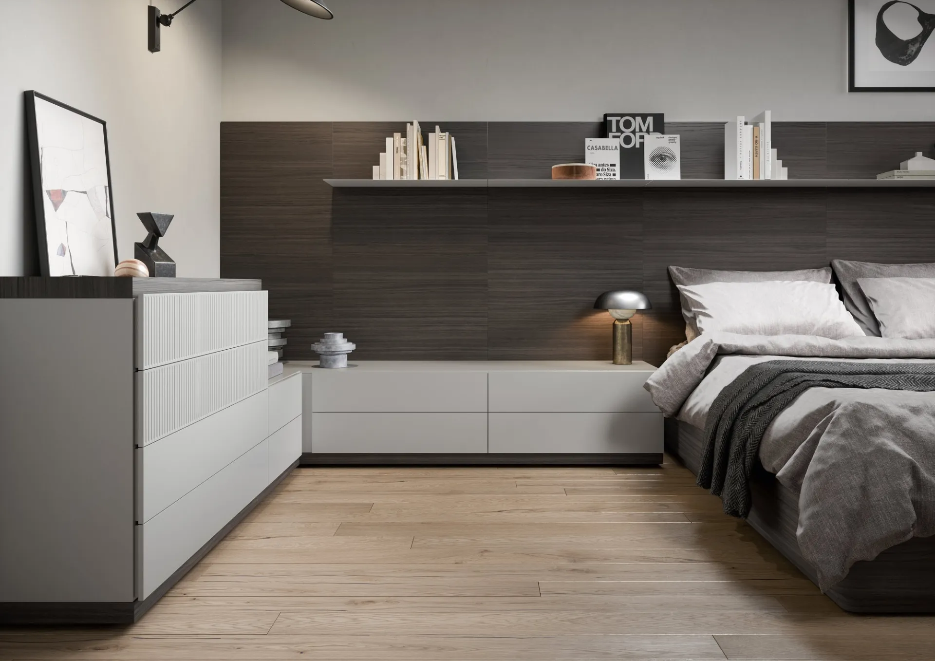 High-quality materials and excellent workmanship for Novamobili's Easy System Bedside Table in matte lacquered finish, available from us along with other different ideas from the brand, to make the bedroom a space that reflects your tastes. Wondering how to match beds, wardrobes, and chests of drawers? With the Novamobili model shown in the photo, you will have furniture designed for a space with modern influences. Bedside tables are furnishings that can complete the bedroom by providing a useful and versatile surface for sure.