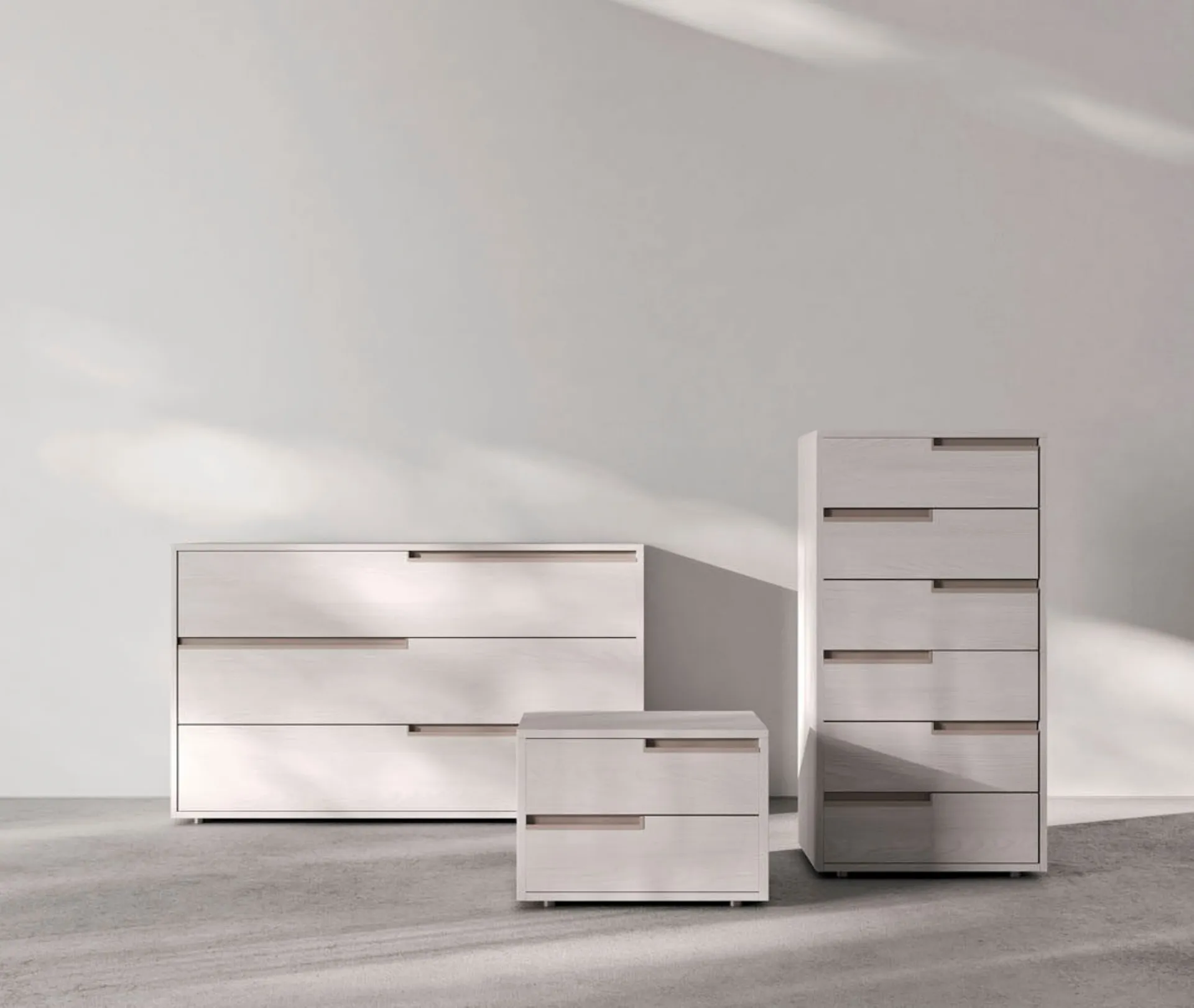 Do you wonder how to match beds, wardrobes, and bedside tables? With the Orme model shown in the photo, you will have a piece of furniture designed for a space with modern references. Bedside tables are furniture pieces able to complete the sleeping area, ensuring a useful and eclectic support area. High-quality materials and excellent workmanship for the Orme Amalia Night Group in melamine, available in the showroom along with other various proposals from the brand, to make the bedroom an environment that reflects your tastes.