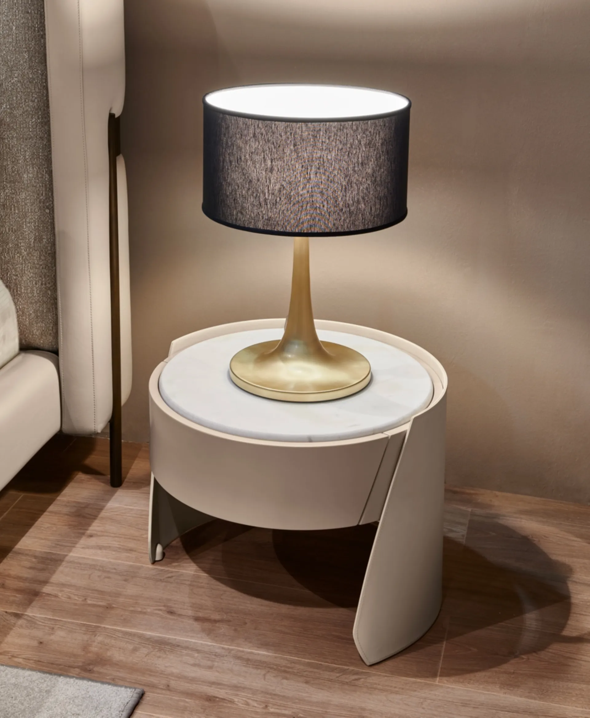 Wondering how to match beds, wardrobes, and nightstands? With the Cantori model visible in the photo, you will have a perfect piece of furniture for a space with design influences. Nightstands are furnishings capable of completing the bedroom area, ensuring a useful and versatile support area. Precious materials and excellent workmanship for the Sharon leather-covered nightstand by Cantori, available from us along with other various proposals from the company, to make the bedroom a space that reflects your personality.