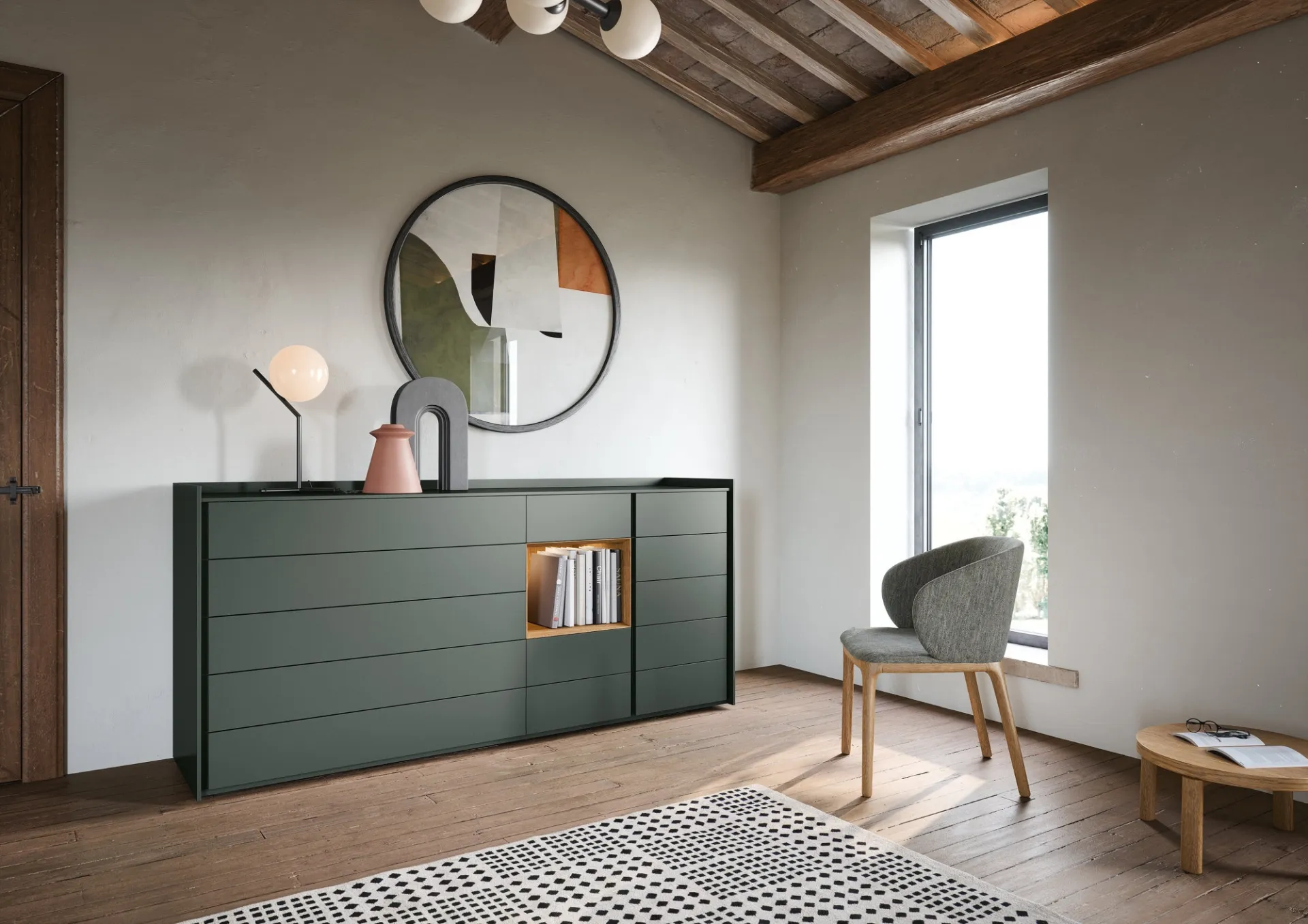 Optimize your property by choosing coordinated furniture compositions or creating aesthetically pleasing style and color combinations with the furniture and accessory elements for the bedroom that we offer, such as the model in matte lacquer shown in the photo, also customizable for you. With our modern bedroom sets from the Novamobili brand, a leader in home furnishings for the bedroom, you can recreate the bedroom you've always desired. Novamobili's lacquered Sly chest of drawers: contact us and discover more about our compositions and furnish the room as you've always imagined. The bedroom also includes bedside tables: useful storage furnishings that allow you to organize small items and have surfaces for various uses.