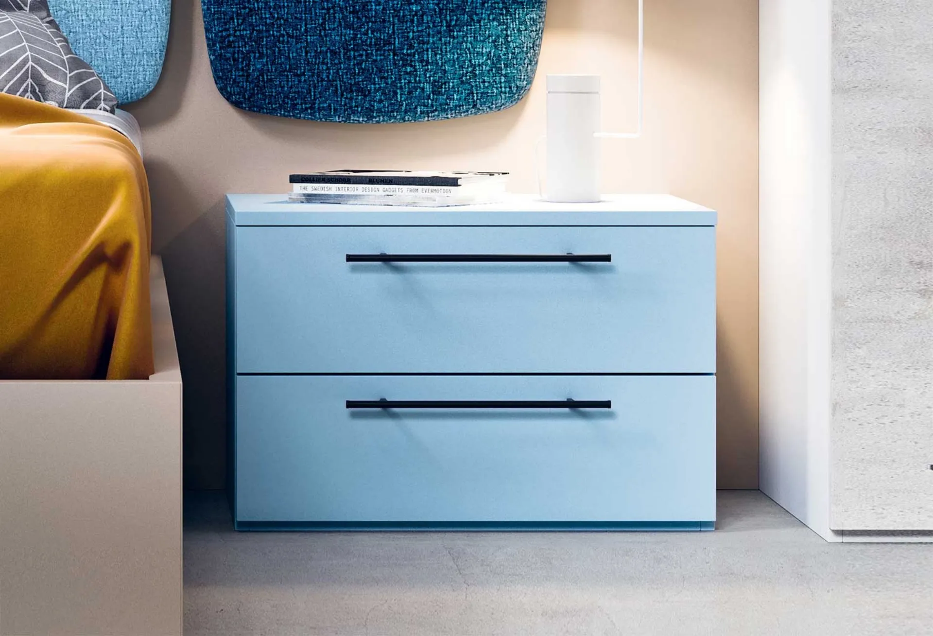 Thanks to these pieces of furniture we can organize objects that we use or display accessories. Start Matt Lacquered bedside table by Clever: it is a type of polyhedral container capable of guaranteeing functionality and an excellent aesthetic result in modern spaces. Get information about our line of night groups from the best manufacturers to optimize spaces with a unique style. Bedside tables are some of the essential furniture and accessory elements in every bedroom, as they offer the possibility to complete the spaces by optimizing every corner. The proposals in matt lacquered finish by the brand Clever, a leader in the production of wardrobes and bedside tables, allow you to create personalized combinations or even have characteristics in clear and deliberate contrast with the other furniture and furnishings.