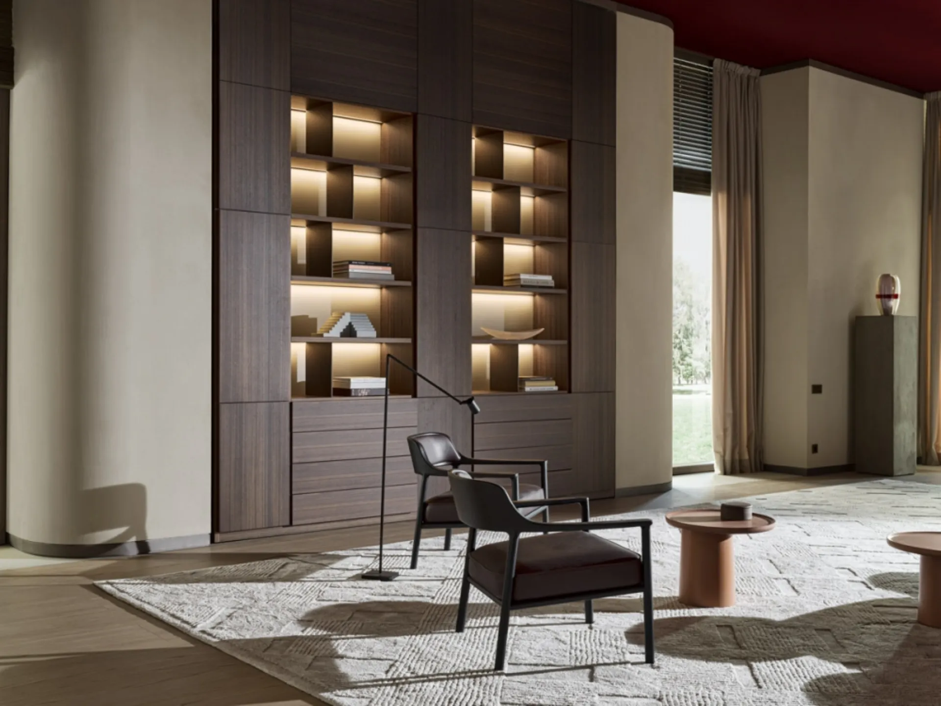 Discover the most beautiful space-saving solutions, such as the wooden living room furniture in the photograph, and bring life to the practical and functional living space you have always desired. Enhance your spaces with Molteni & C furniture and accessories: in our store, you will find functional and high-quality products, always made with top-choice materials and great style. You can use these furniture pieces as versatile surfaces for both everyday items and purely decorative ones. By contacting our designers, you can obtain information of any kind about the Molteni & C 505 UP SYSTEM 11 wall bookcase, available here. The well-known and prestigious brand produces modern wall bookcases in a wide variety of designs, sizes, finishes, and shades to ensure maximum versatility.