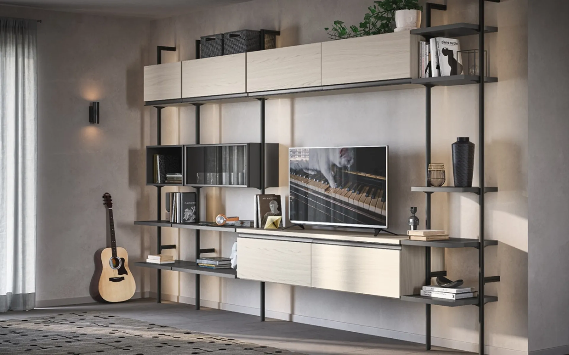 Contact us for information and quotes on the model shown in the photo: if you want to complete modern rooms, then this bookcase with defined lines is perfect for you. The living room is, by excellence, the area of the house where we dedicate ourselves to relaxation every day, talking with family and friends, resting in solitude or watching television. Modern bookcases are always particularly loved for arranging the living room and walls, perfectly combining practicality and design. The modular bookcases by Cinquanta3 are available in various configurations: corner, linear, suspended, and customizable with multiple elements, shelves, and compartments. The Uniko modular bookcase by Cinquanta3 in the photo, in the melamine variant, is truly functional and versatile, robust and durable, and can be customized according to the most personal housing needs.