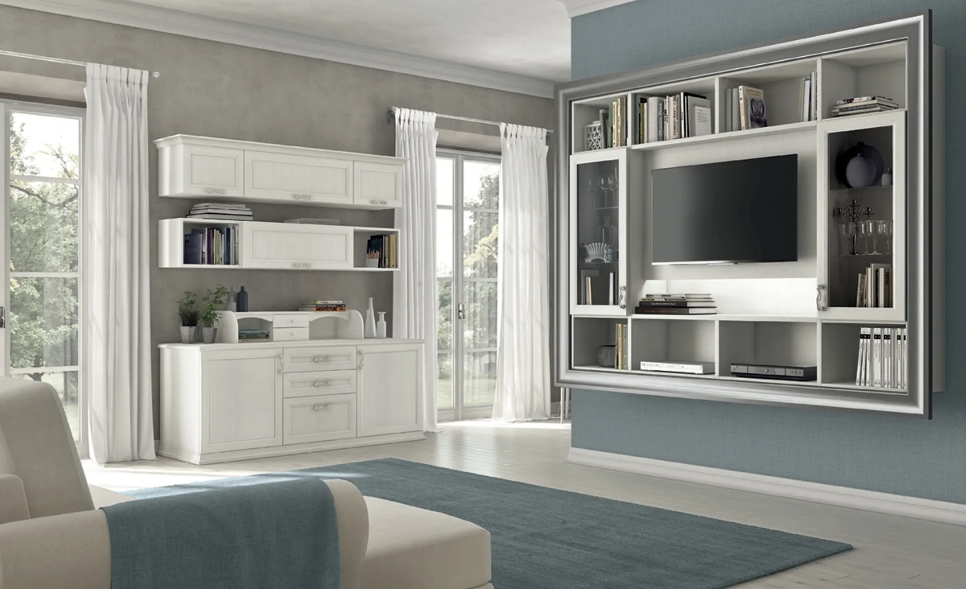 The hanging bookcases by Colombini Casa are available in various shapes: corner, in a line, hanging, and customizable with different elements, shelves, and compartments. The living room is, par excellence, the area of the house where one rests every day, converses with family and friends, relaxes alone, or watches television. Classic bookcases are always highly appreciated for organizing the living area and walls, combining functionality and style. The Arcadia AS019 Bookcase by Colombini Casa in the photograph, in the melamine variant, is truly functional and versatile, solid and durable, and can be personalized according to the most personal housing needs.