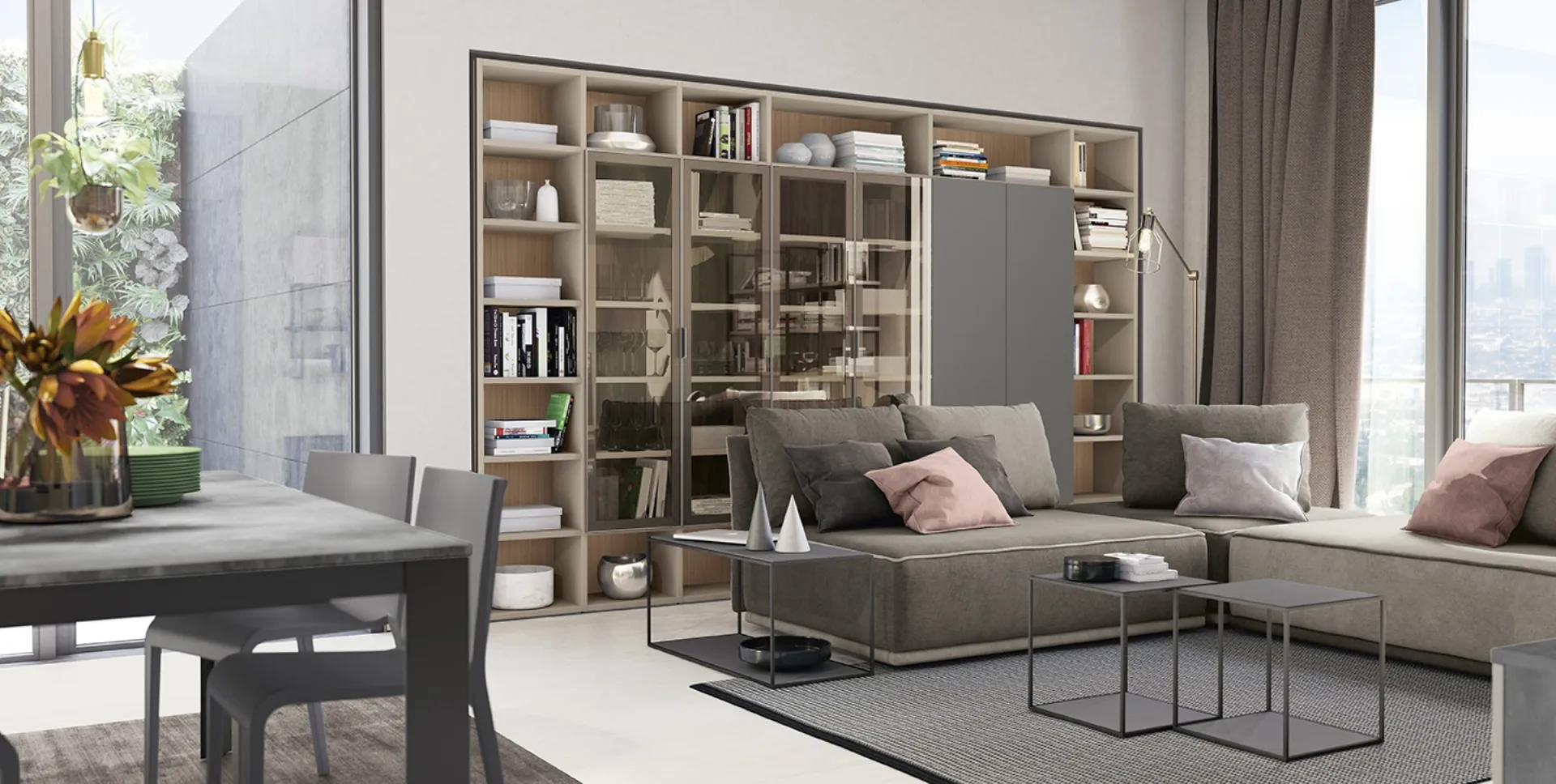 The Colombini Casa wall libraries are available in various shapes: corner, linear, suspended, and customizable with different elements, shelves, and compartments. Modern libraries are always particularly loved for setting up the living room and walls, combining functionality and style excellently. The Golf Infinity A03 Bookcase by Colombini Casa in the image, in the melamine variant, is truly functional and versatile, solid and durable, and can be customized according to the most specific housing needs.