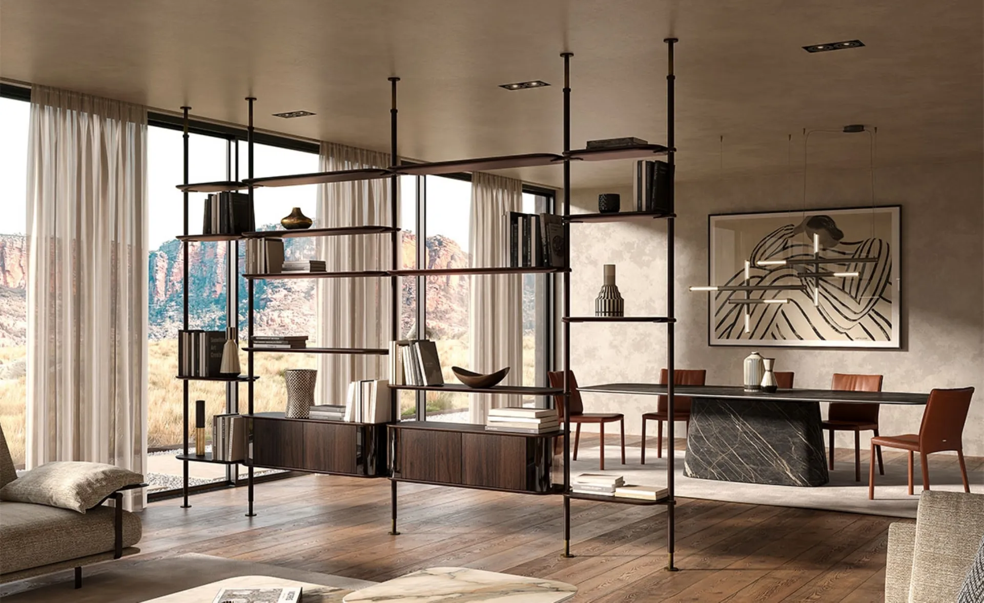 Thanks to the Harbour dividing bookcase by Cattelan Italia, you can change the look of your home, optimizing every space with excellent aesthetic effects. The Harbour dividing bookcase by Cattelan Italia is ideal for giving personality to your spaces: the different solutions offered by the brand will allow you to best equip a functional and practical living area. Discover in store our series of dividing bookcases from the best furniture brands. With the wooden living room furniture available here, you can recreate a unique atmosphere characterized by the bold shapes of this model.
