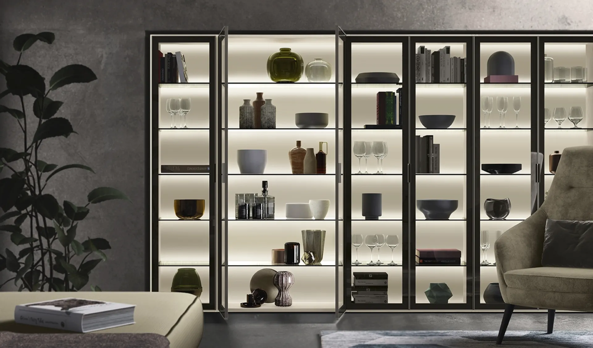 If you are looking for a glass bookcase that is solid, functional, beautiful and refined, taking a look at our modern solutions will help you find the model that suits you. The Infinity L03 bookcase by Colombini Casa shown here fits well into a practical and dynamic as well as beautiful space. Organizing your living room in the best way possible is achievable: contact us for more information on the bookcase model in the photo and optimize your home with the quality assured by the well-known and renowned brand. Living room furniture, such as wall bookcases, allow you to keep the space tidy by containing books, magazines, and assorted objects.