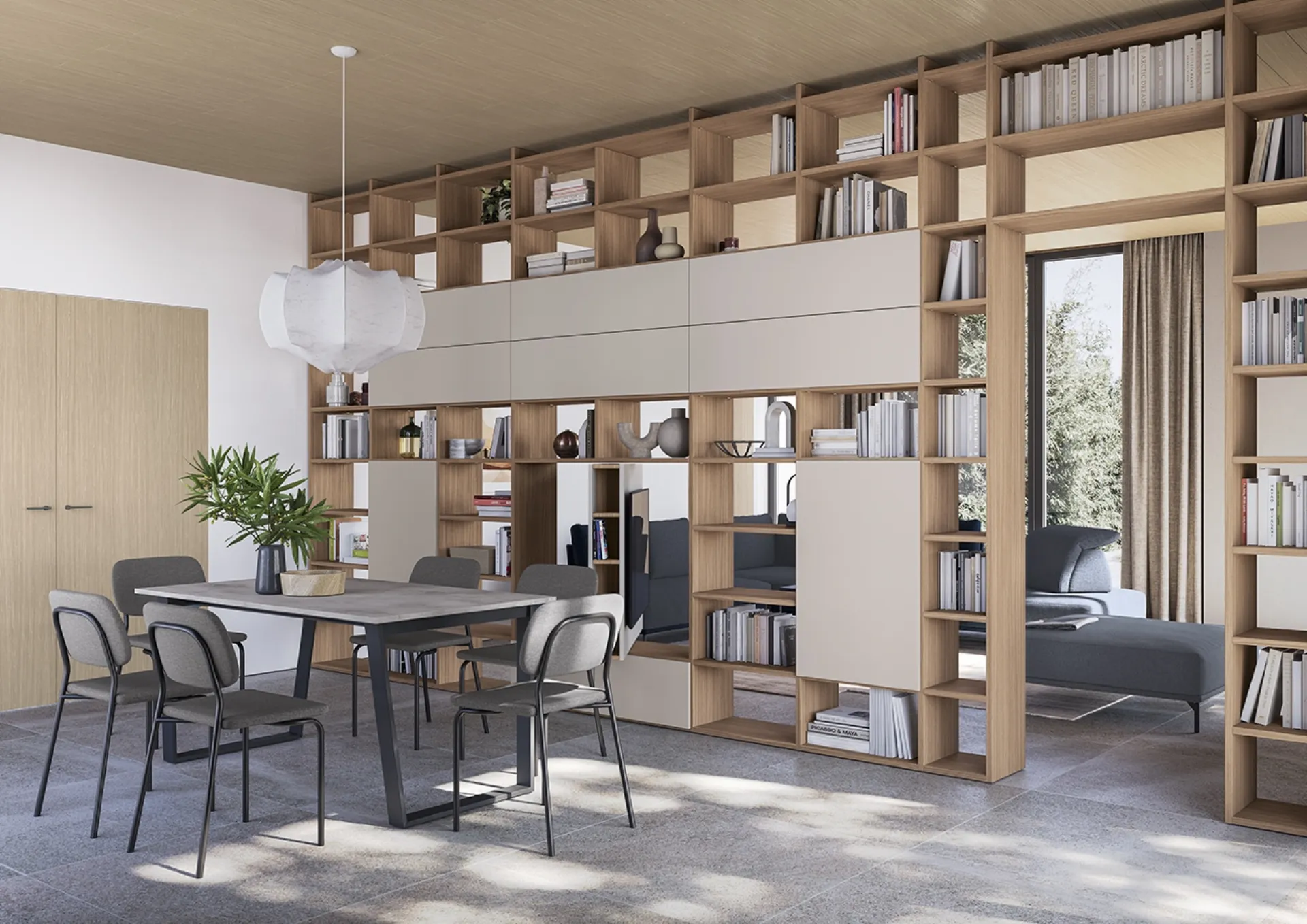 The Infinity L04 bookcase by Colombini Casa presented here is the perfect product for a dynamic and functional space as well as having great aesthetic value. If you're looking for a melamine living room furniture that is sturdy, functional, pleasant, and elegant, taking a look at our modern solutions will help you find the model that suits your needs. Organizing the living room is not difficult: choose the appropriate type of bookcase to furnish the space and enhance the atmosphere. Living room furnishings, such as dividing bookcases, allow you to keep the space tidy by containing books, magazines, and assorted objects.