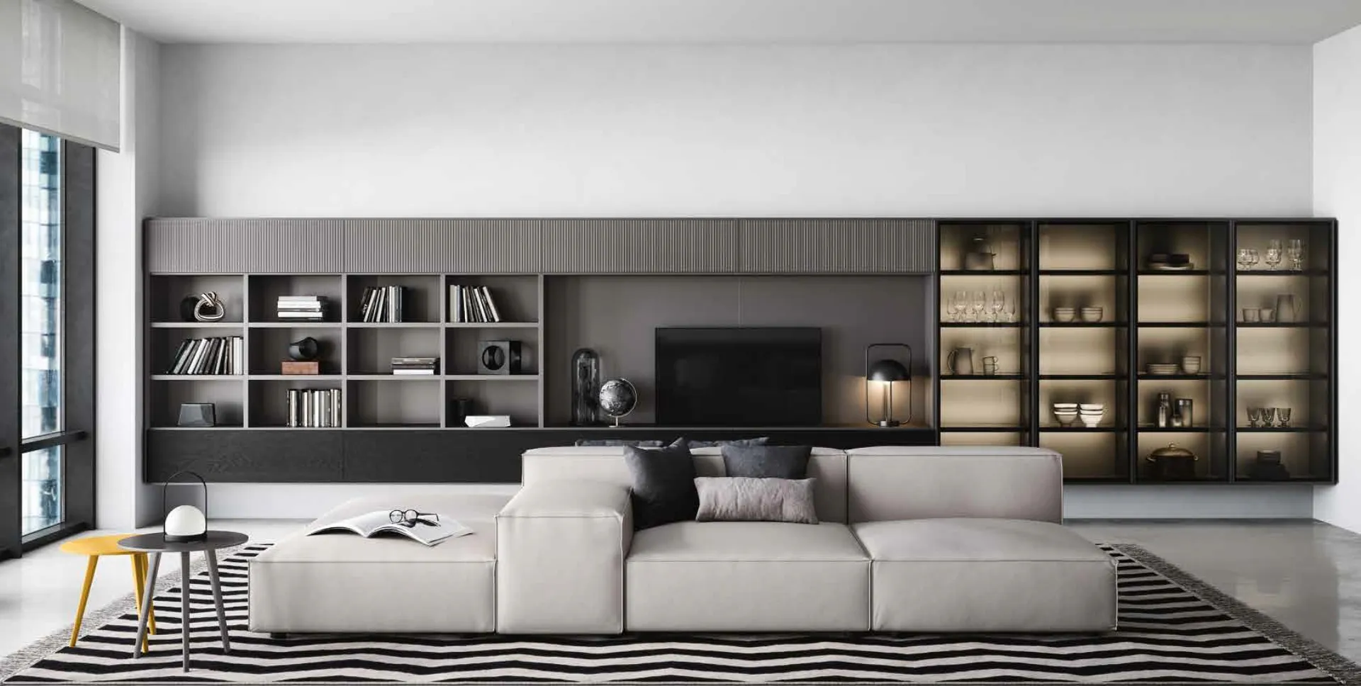 If you are looking for a matte lacquered bookcase that is solid, functional, pleasant and elegant, taking a look at our modern solutions will help you find the model that suits you. Furniture for the living area, such as wall bookcases, allow you to keep the space tidy by containing books, magazines and various objects. The Novamobili Wall 30 Bookcase available here is the ideal choice for a practical and beautiful workspace. Organizing your living room is possible: contact us for more information on the bookcase model in the picture and enhance your home with the excellence guaranteed by the renowned brand. Organizing the living room is not difficult: choose the right type of bookcase to furnish the space and enhance the atmosphere of the room.