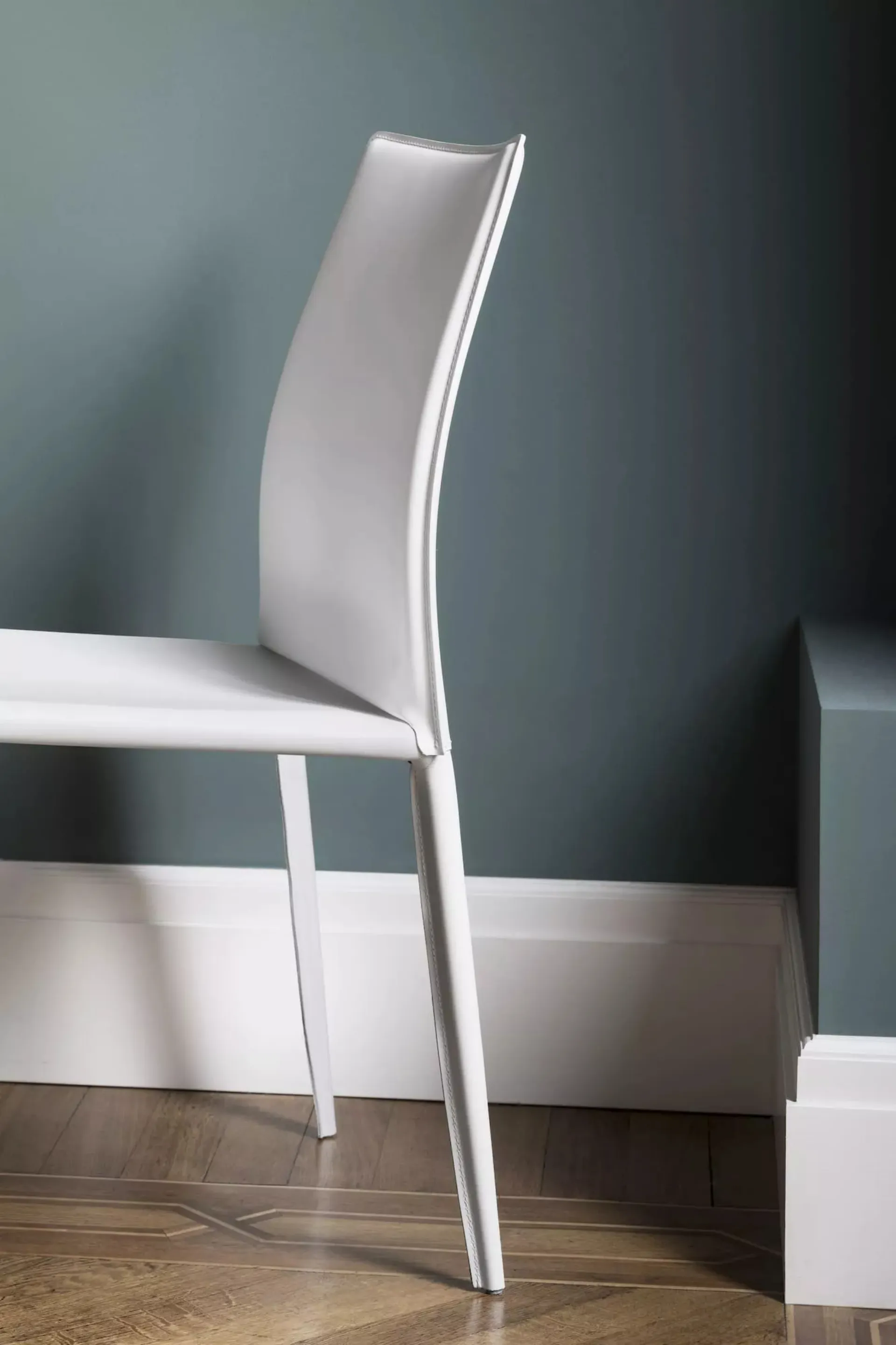 "Linda chair by Bontempi": this model will complete spaces of every kind, especially modern environments. In the living room or in the kitchen, chairs are essential pieces of furniture: they define the mood of the space and serve an indispensable function. The living room and kitchen are not truly pleasant and comfortable if furnished with the wrong chairs, that's why they should be matched with the rest of the furniture and the size of the room. A wide variety of fixed dining chairs awaits you in our store: contact us for information and quotes, and enhance your premises with the excellence that only Bontempi can guarantee for furniture and accessories. If you desire a leather chair to enrich your home atmosphere, get information about the model in the image and find a matching table.