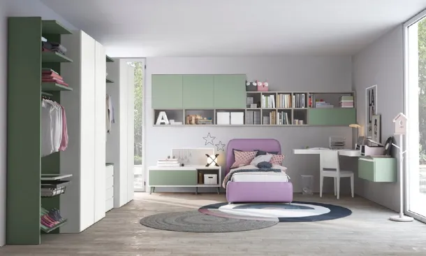 Modular bedrooms for girls: discover the Golf K02 melamine model by Colombini Casa for modern bedrooms.