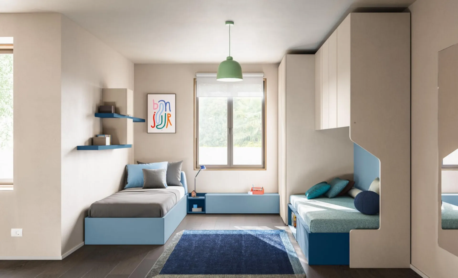Bring aesthetics and vibrant colors into the room dedicated to the younger ones with this solution, one of Mistral's bunk beds for boys. If you are looking for creative ideas to perfectly furnish your children's room, we present to you Mistral's Bunk Bed 46 with a melamine finish. When it comes to furnishing the youth room, rely on us: in our store we showcase all the most exclusive modern compositions for their bedroom. This melamine proposal perfectly combines practical qualities and aesthetic value of the bunk bed, as it is able to match ergonomics and safety. Mistral offers a rich catalog of customizable accessories: you will find bed, wardrobe, work table, chairs and bookshelves.
