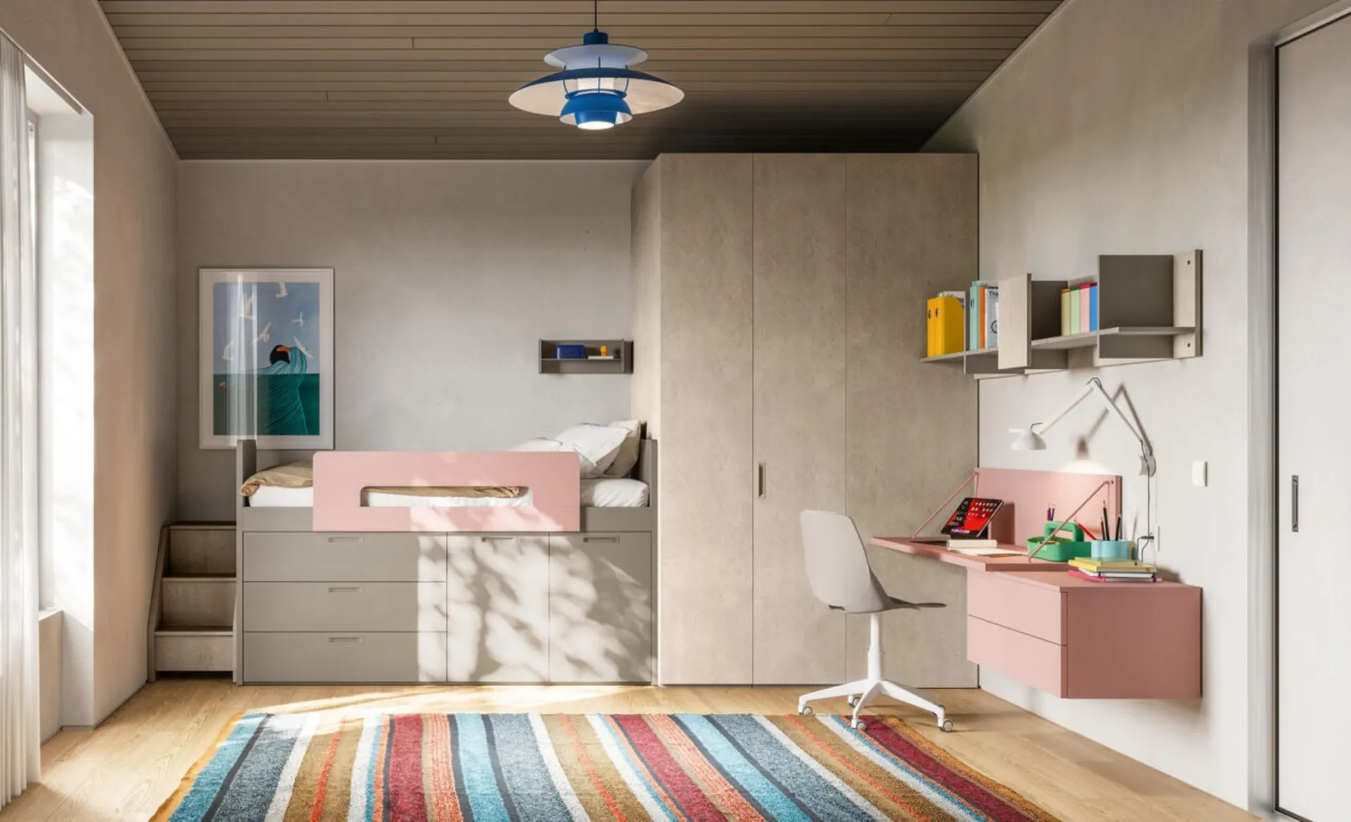 With the Mistral Space-saving Room 49 in melamine, you will ensure a perfect combination of ergonomics and safety, ideal for your children's room. We offer a variety of modern loft bedrooms for girls from the brand, perfect for accompanying them as they grow. In-store, we will guide you from choosing furniture for the room to designing the place where your children will grow up, having fun and dreaming. Our children spend many hours of the day in their bedrooms: make them suitable for studying, having fun, and resting every day. Our children's bedrooms are the environments where they will grow up having fun and dreaming, so it is essential that the space is functional.