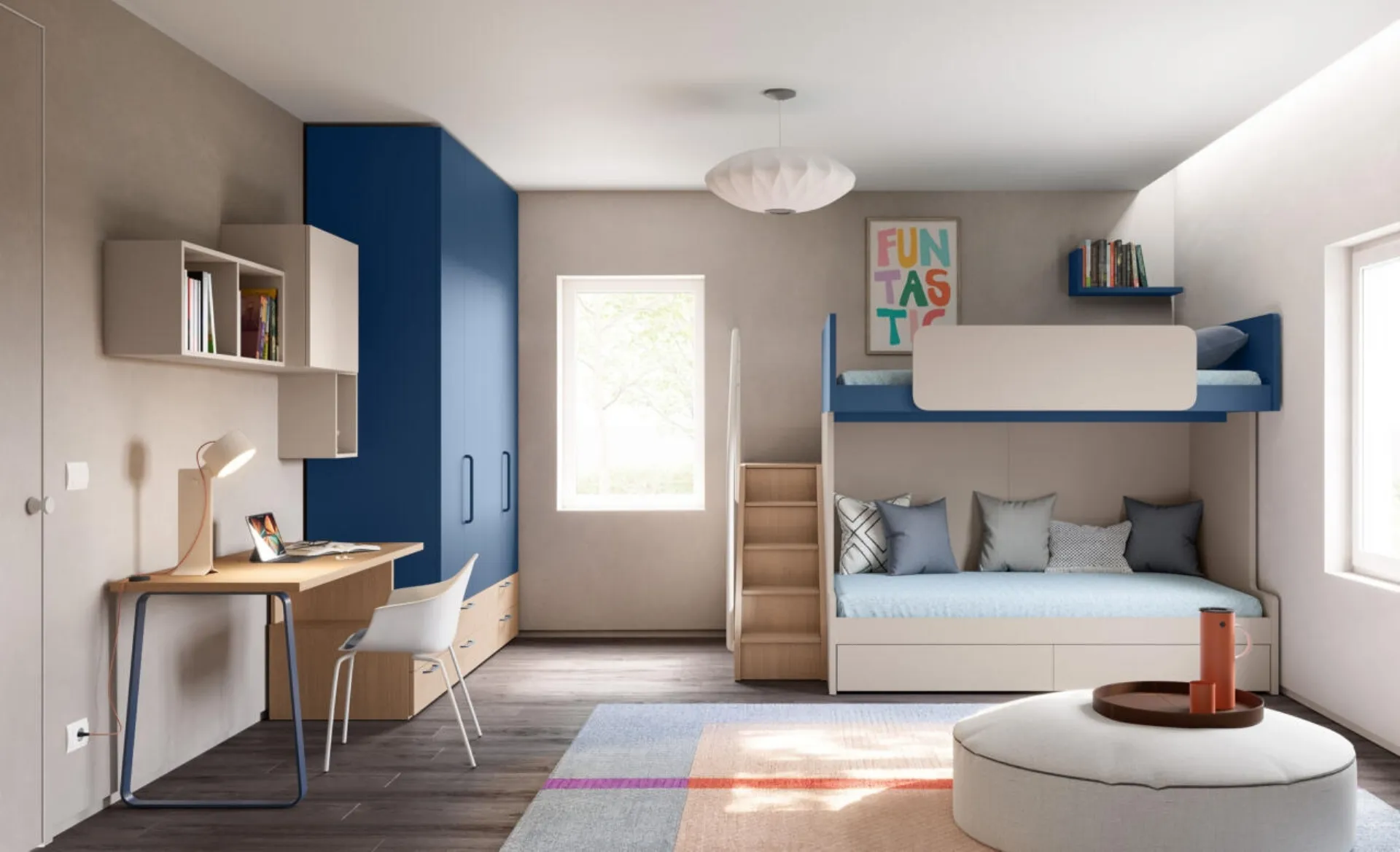 With the Space Saving Room 52 by Mistral, you will make your children's room a truly livable and safe interior that will follow them as they grow up. To decorate the best bedrooms, Mistral offers design and multifunctional solutions: there are many activities that your children do there. This proposal with a melamine finish, among those with bunk beds for girls by Mistral, satisfies the needs of adults and the tastes of children. Visiting us means experiencing firsthand all the most exclusive solutions for girls with bunk beds in melamine that we present in our store. The well-known brand offers various modern solutions, making the bedroom a place where your children will be happy to grow up and rest.