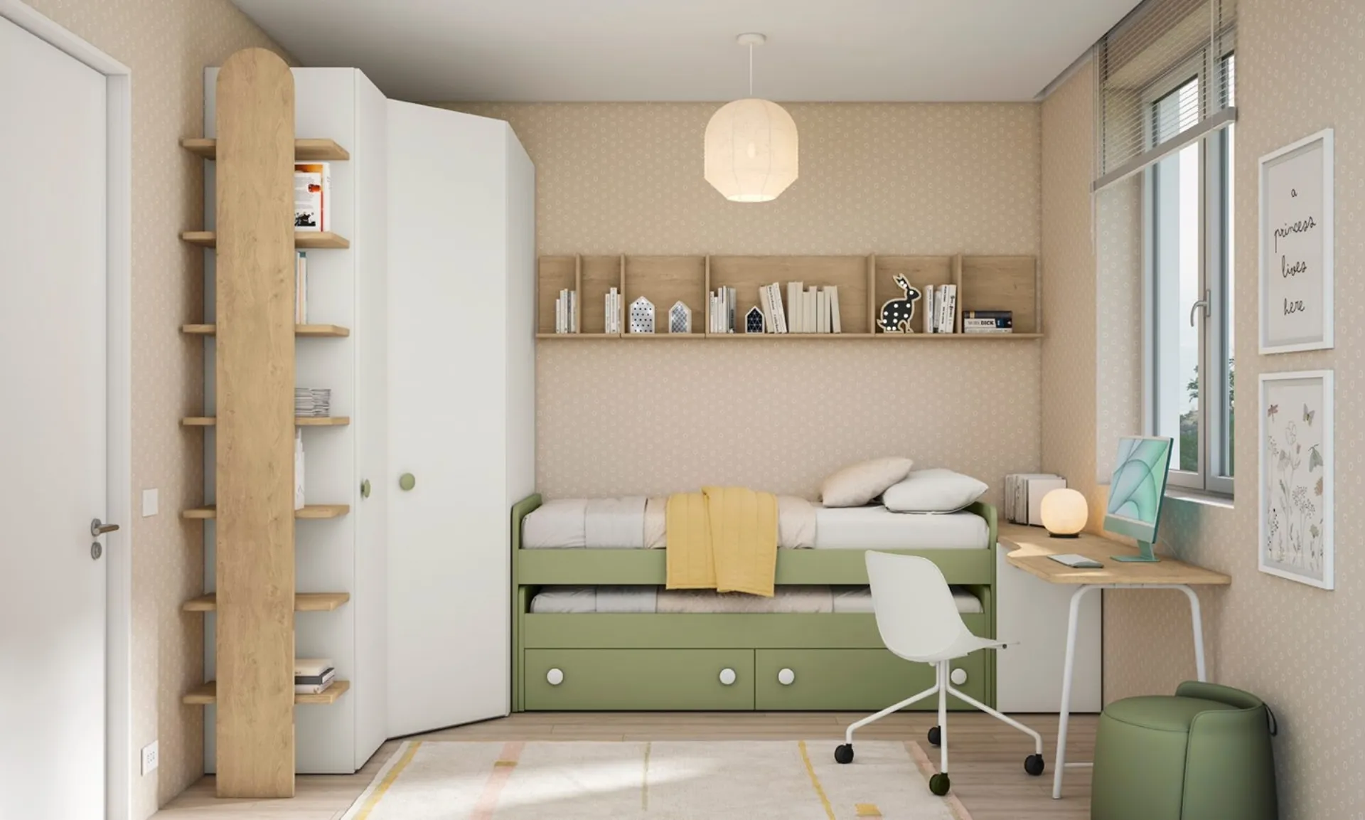 The Children's Bedrooms with sliding beds by the renowned brand are available in different versions, always meeting the needs of children. Discover in our store the Volo Kid C004 Bedroom by Colombini Casa in melamine: it is ideal for recreating a comfortable, beautiful, and well-organized environment. Quality materials and eco-friendly paints distinguish the brand's proposals, including the modern ones with sliding beds ideal for you. The accessory elements available for the Children's Bedrooms with sliding beds by Colombini Casa are always adaptable, to avoid any space and functionality issues. If the room is small-sized, there are several solutions that Colombini Casa offers, always able to combine functionality and ergonomics.
