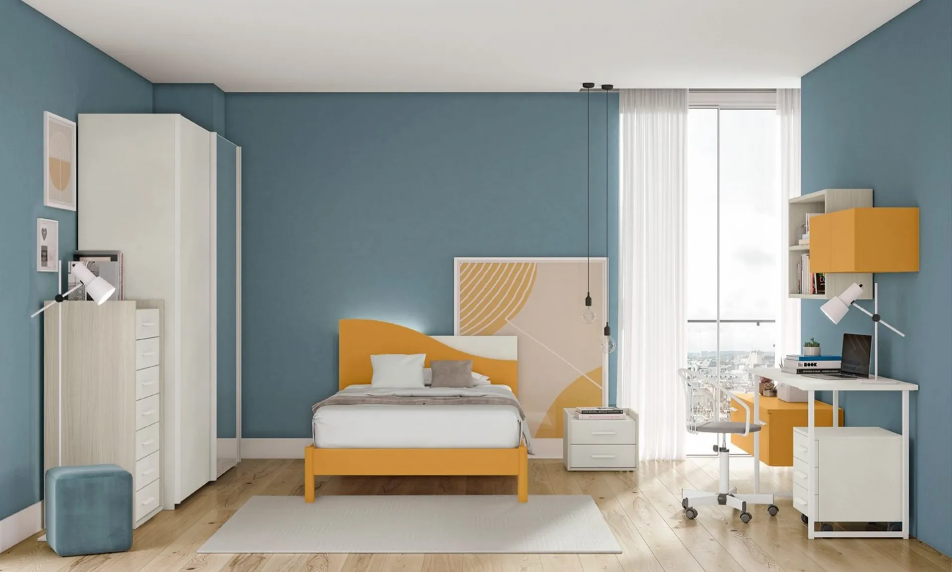Colombini Casa meets the tastes of children and the needs of adults with its modern modular children's bedrooms, ideal for all kinds of requirements. Come to our showroom and you can see in person all the most exclusive modular furniture compositions for young people by Colombini Casa. With a Colombini Casa furnishing composition, you can easily and stylishly complete the environment in which your children spend their important years. The Volo Kid C020 children's bedroom by Colombini Casa in melamine is a complex world to furnish with care, mixing various custom accessories. Trendy colors and excellent articulated designs distinguish the most exclusive compositions of the well-known and renowned brand that we present in our showroom.
