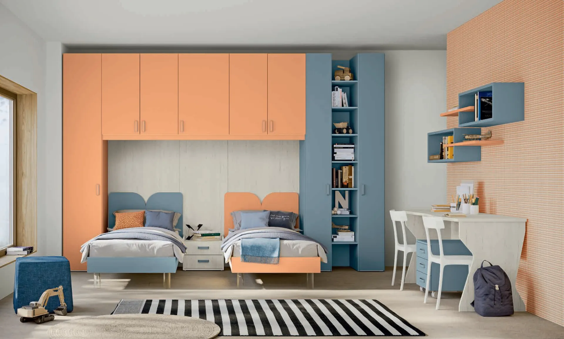 In designing the room for children entrusted to us, in our store we present all the most exclusive modern furnishing compositions for their bedroom. Bring aesthetics and vibrant colors into the room dedicated to the youngest with this proposal, one of the bunk beds for girls by Colombini Casa. This proposal in melamine perfectly combines the qualities of practicality and aesthetics of the bedroom, as it is able to unite functionality and ergonomics. Colombini Casa offers a wide range of accessories to be customized: you will find a bed, wardrobe, work table, chairs, and bookshelves. If you are looking for design ideas to perfectly furnish your children's room, we present the Volo Kid C030 bedroom by Colombini Casa with a melamine finish.