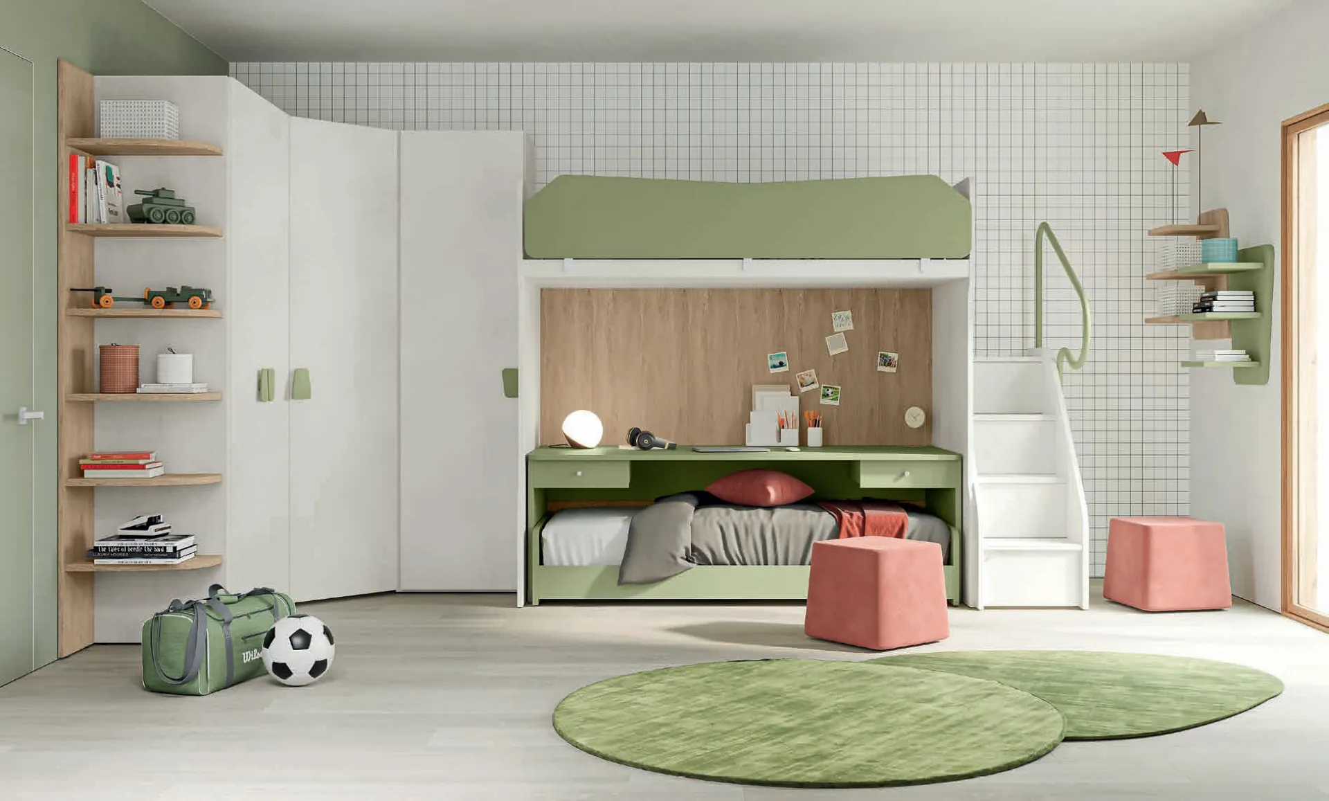 The loft children's bedrooms from the well-known and renowned brand are available in different versions, always catering to the needs of children. Discover in our showroom the Volo Kid C033 bedroom by Colombini Casa in melamine: it is ideal for creating a cozy, beautiful, and well-organized environment. Fine materials and non-toxic paints characterize the brand's proposals, including modern loft beds that are ideal for you. The accessories available for Colombini Casa's loft bedrooms are always adaptable, to avoid any space and functionality issues. If the room is small, Colombini Casa offers various solutions, always able to combine functionality and ergonomics.