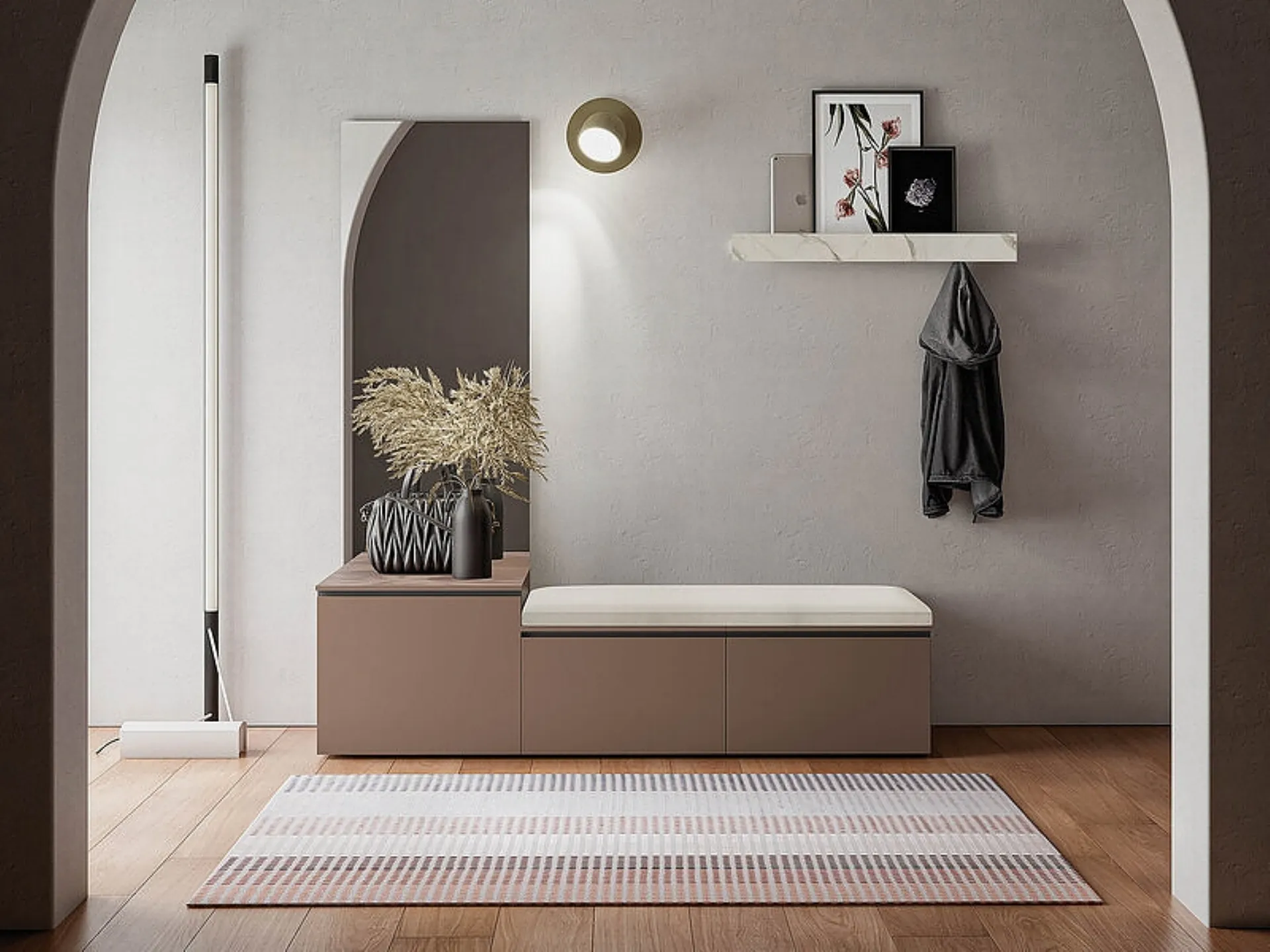 Choosing modern entrance furniture means turning to the years of experience in the field of furnishings of the renowned brand. The Gola Up entrance furniture composition 5 by Birex in matte lacquer for modern entrances visible in the photo is one of the most unique models of storage furniture produced by the brand. In order to ensure complete satisfaction to their customers, the brand produces the entrance furniture in the photo in various colors and materials. The entrance of the house should be easy and pleasant to look at: choose one of the most exclusive compositions that we offer in our showroom. If you want to equip the entrance of your home with the guarantee of having the continuity you need and a high aesthetic content, contact us and visit us.